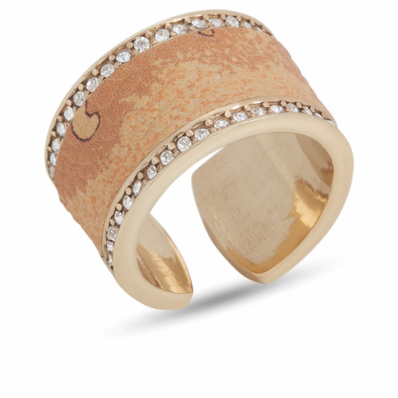 Due le proposte per gli anelli: un modello – in argento placcato oro giallo – con maglia centrale in vera pelle con stampa Geo Map e il logo 1A Classe inciso, disponibile in tre misure e una seconda versione – in argento placcato oro rosa – a fascia regolabile che si abbina al design del bangle ed è rivestito in vera pelle con la stampa Geo Map incorniciata da due file di zirconi. La collezione di gioielli Rodeo Drive di Alviero Martini 1A Classe si completa con i tre modelli di orecchini. Gli orecchini pendenti in argento placcato oro rosa giocano con due maglie agganciate tra loro grazie ad un raffinato elemento – in argento placcato oro rosa con logo 1A Classe inciso.