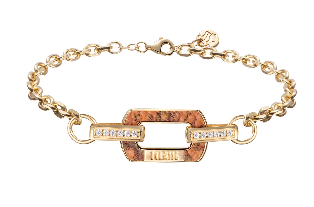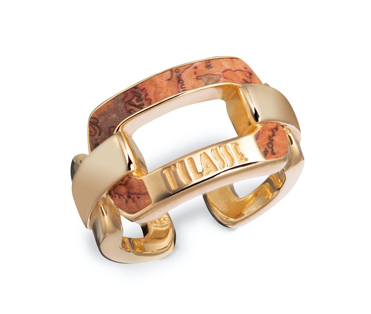 Alviero Martini 1A Classe presenta la nuova collezione di gioielli Rodeo Drive – collane, bracciali, anelli e orecchini realizzati interamente in argento 925 placcato oro e resi unici dagli inserti in vera pelle con la stampa dell’iconica Geo Map.
