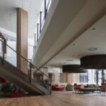 Il nuovo Resort Falkensteiner Hotels & Residences – del brand austriaco Falkensteiner Michaeler Tourism Group (FMTG) – si sviluppa su quattro livelli, sfruttando il pendio della montagna, e si articola in due edifici connessi, come fossero ali, da un nucleo centrale in cui sono collocate le aree comuni. Dal piano strada si accede alla reception caratterizzata dalla boiserie in legno di abete, all’area Wellness con la SPA di 1.400 mq e alla ski room, mentre ai piani superiori sono collocate le 123 camere e suite, tutte con balcone e vista panoramica. Scendendo dalla grande scala centrale si raggiungono invece la lobby con zona bar, oltre all’area ristorante e alla piscina. Da qui si può anche arrivare alla terrazza esterna, aperta sui boschi e sulle montagne. A sottolineare l’anima di family hotel, non mancano scenografiche aree dedicate a bambini e ragazzi.