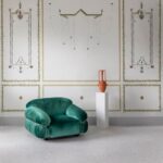 Quattro carte da parati del tutto inedite, con decori ispirati a ghirlande, piante da frutto in fiore, mosaici e marmi, ricreano la magia di un luogo fermo nel tempo, a tratti mistico. I dettagli dipinti a mano arricchiscono il disegno, confermando al tempo stesso l’eccellenza artigianale della produzione di Misha.