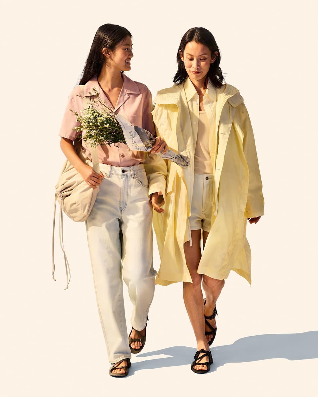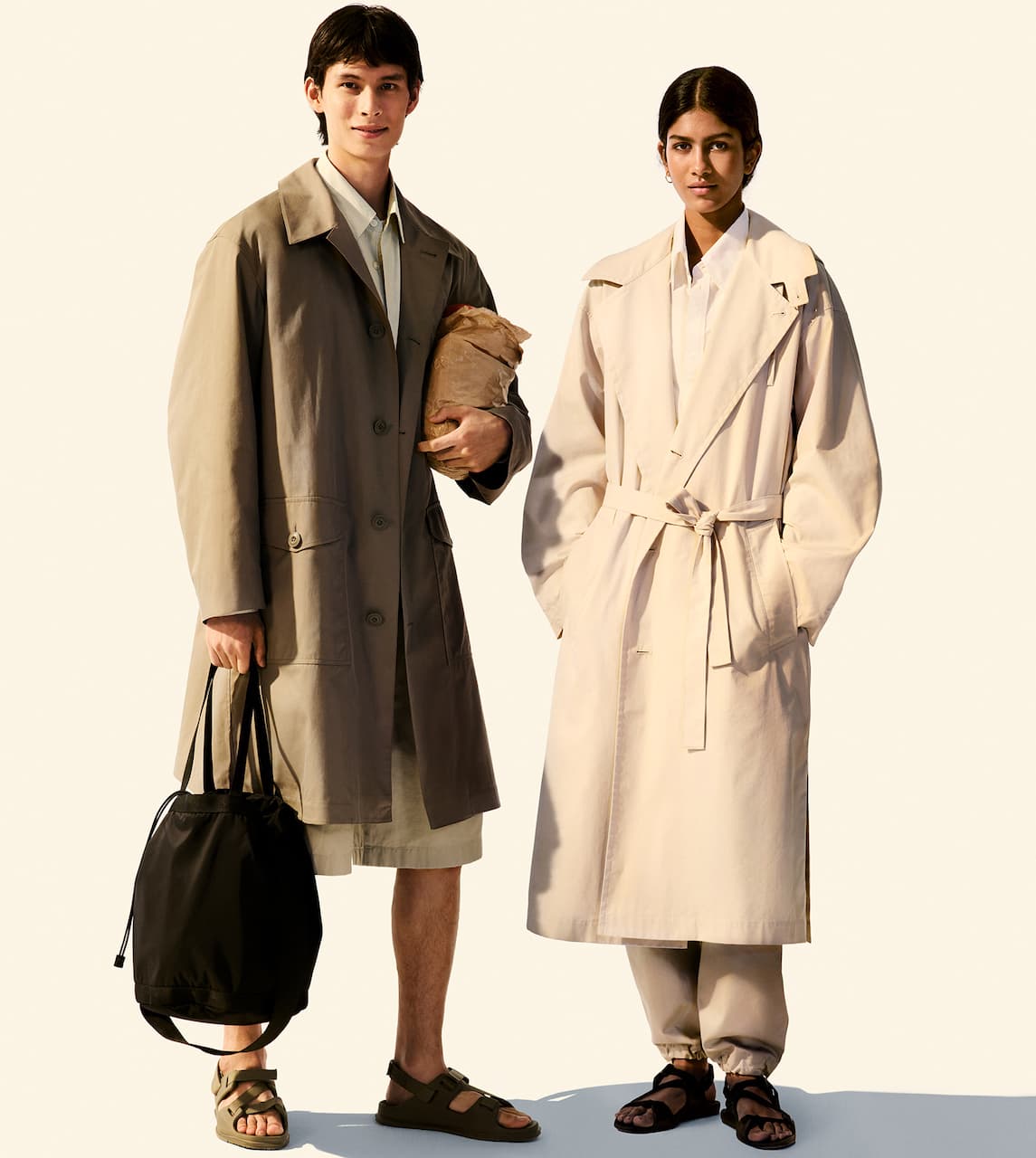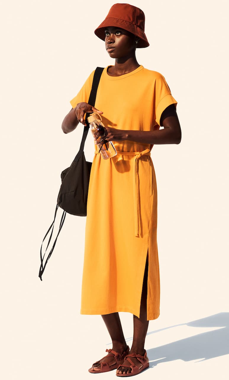 Capi sovrapposti in morbido cotone opaco e cotone AIRism rinfrescante si mescolano a capi spalla ariosi e utilitaristici per creare una gamma completa di basici versatili con proporzioni spesso inaspettate, ma sempre ponderate. Una tavolozza di colori giocosa ma elegante combina toni neutri e discreti, come il blu e il beige, con vivaci tocchi di verde, arancione, giallo, viola e rosa.