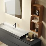 Ardeco presenta anche un’altra novità. I nuovi pensili, versatili, accostabili e dal carattere unico. Possono vivere liberamente a parete oppure in appoggio, creando ogni volta configurazioni uniche e personali. Il pensile è realizzato in folding, gli spessori spariscono per permettere il massimo della progettualità e componibilità, chiuso, a giorno oppure mixato si presta a contaminare tutti gli spazi dell’ambiente bagno e della casa. Un terzo della superficie si presenta aperta, a vista, esaltando i contasti volumetrici e cromatici. Una soluzione già sperimentata per le aree living, ma che ora si inserisce nell’arredo bagno, in una commistione tra gli spazi dove gli ambienti interagiscono tra loro, in soluzioni di continuità. Disponibili in una vasta gamma di colorazioni, segno distintivo dell’azienda