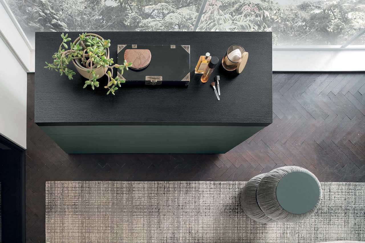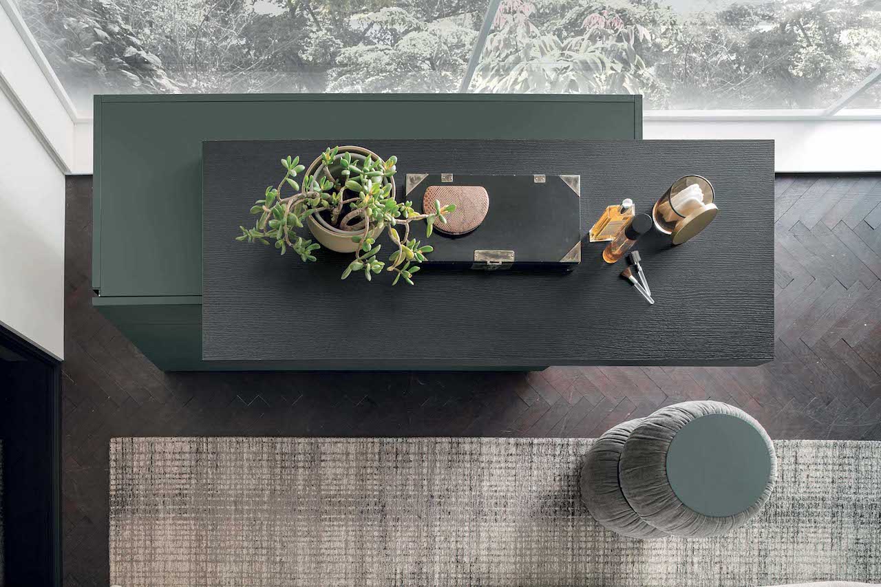 Massima versatilità anche per il comò Morfeo che si contraddistingue per le sue linee pulite e minimali. Il piano scorrevole rivela un secretaire dove poter riporre preziosi e piccoli oggetti.