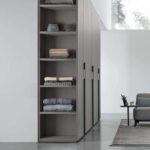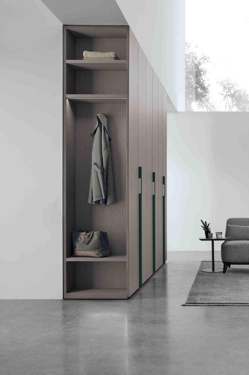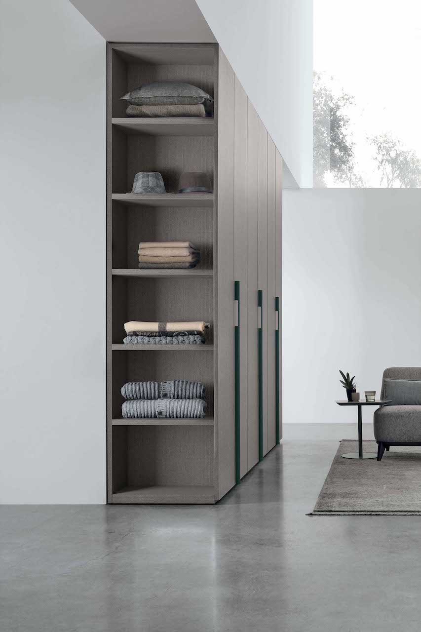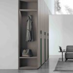 Come nel caso del modulo per armadio Terminale, un vano a giorno laterale che può essere completamente rifinito e attrezzato su misura secondo le proprie esigenze con mensole, cassetti, specchiera o appendiabiti. Una proposta pratica per rendere utile e funzionale una parte dell’armadio che solitamente risulta inutilizzata e anche antiestetica. L’armadio è disponibile in numerose finiture ed è interamente personalizzabile al suo interno.