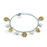 La collana – un girocollo di 40 cm – alterna sulla sottile catena in acciaio con chiusura brandizzata, charms altamente identificativi dello stile Philipp Plein: oltre ai cristalli, tributo alla gioielleria più tradizionale, il logo esagonale PP inciso e i teschi tridimensionali. Per i loghi esagonali e i teschi, la finitura scelta dell’acciaio è la calda tonalità IP oro giallo che mette in risalto questi elementi identitari e conferisce assoluta preziosità al collier. Il bracciale ha la stessa costruzione della collana: la sottile catena in acciaio è lunga 15 cm adornata dai charms con finitura dorata.