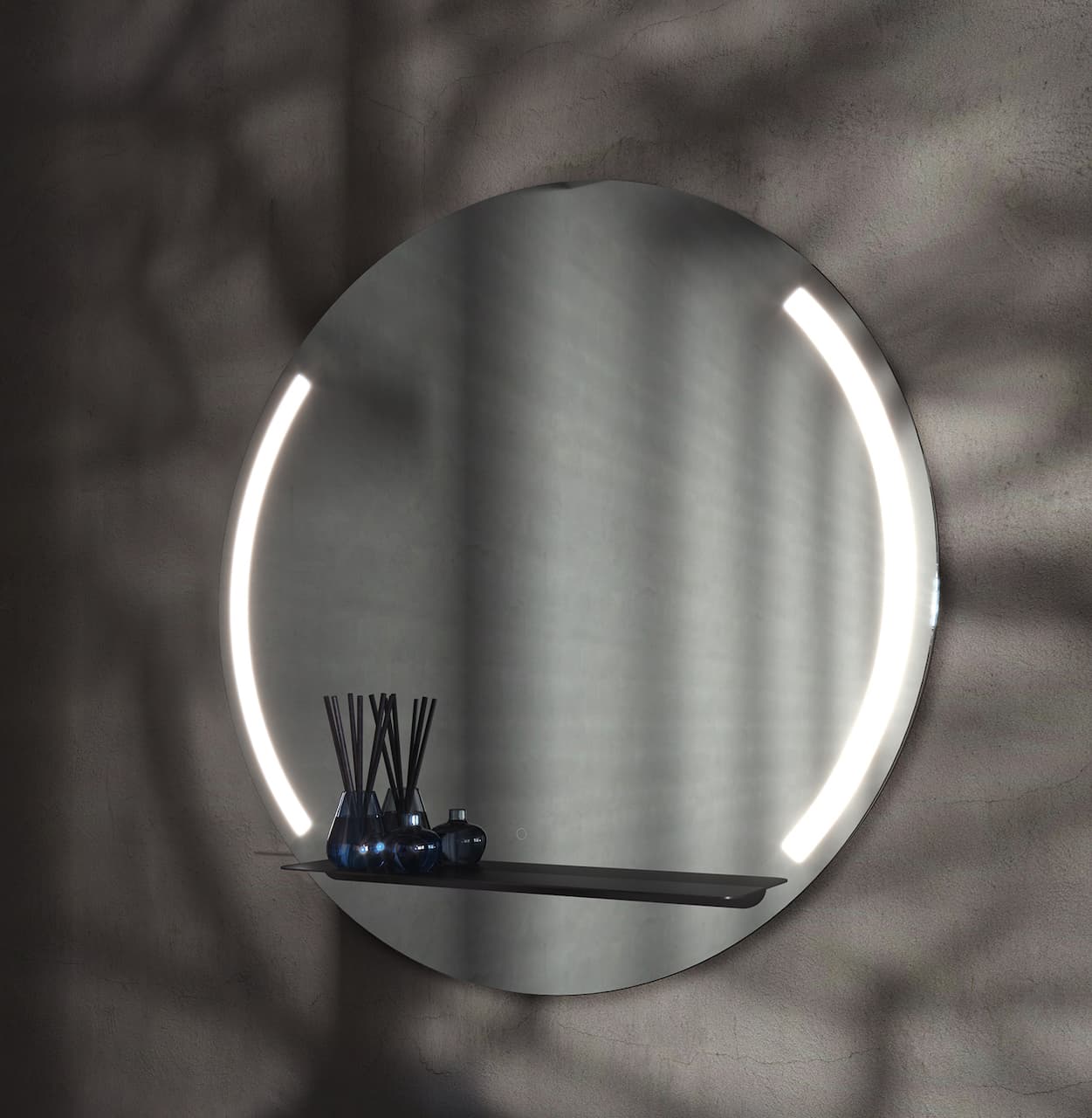 Infine, l’interruttore touch illuminato on/off con cambio colore e funzione dimmer, e la mensola in metallo nero opaco, un pratico spazio per gli oggetti per la cura quotidiana, rendono il design di Oceano Round davvero unico.