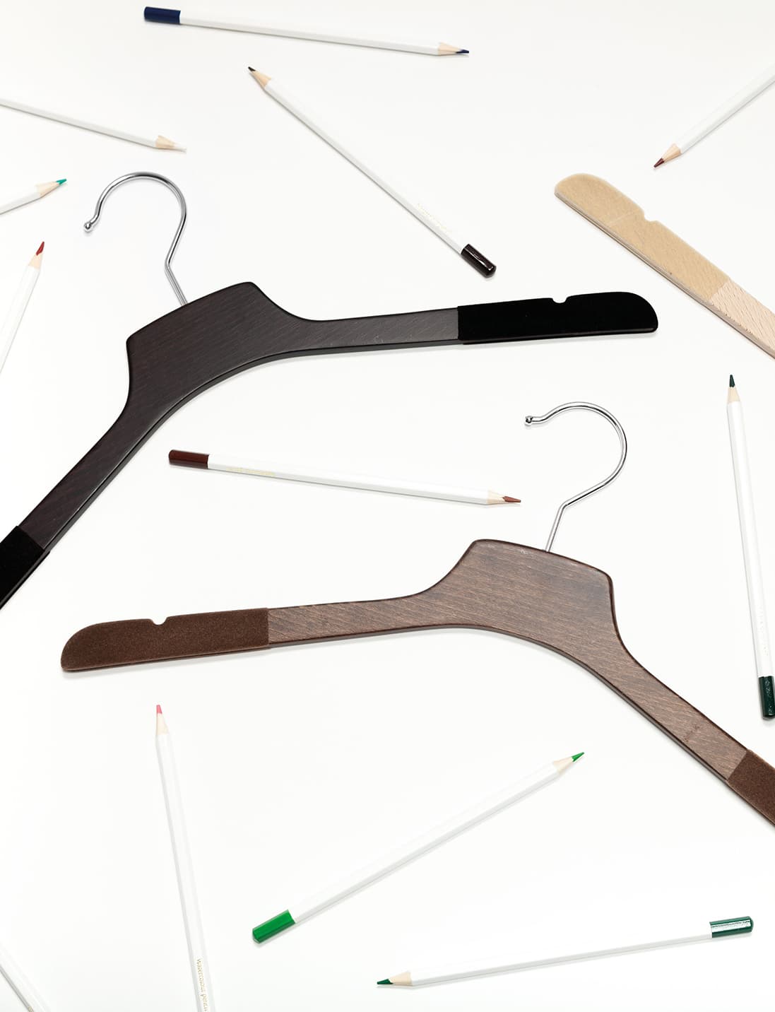 La nuova proposta Toscanini è versatile e per coerenza stilistica si abbina facilmente anche alle collezioni Italian Classic e Light Design dell’azienda. È disponibile in 4 versioni: con taglio spallina, con taglio e clips per appendere gonne e pantaloni, con taglio e asta per i pantaloni, con taglio e flock per top e camicie in seta. Marcello Supersottile è una piccola opera d’ingegno, a cui la sottrazione ha donato slancio senza togliere bellezza né sostanza.I modelli in legno di faggio sono disponibili nelle finiture Cerato, Noce Canaletto e Wengé e possono essere personalizzati con le iniziali, il nome dello yacht o del brand.