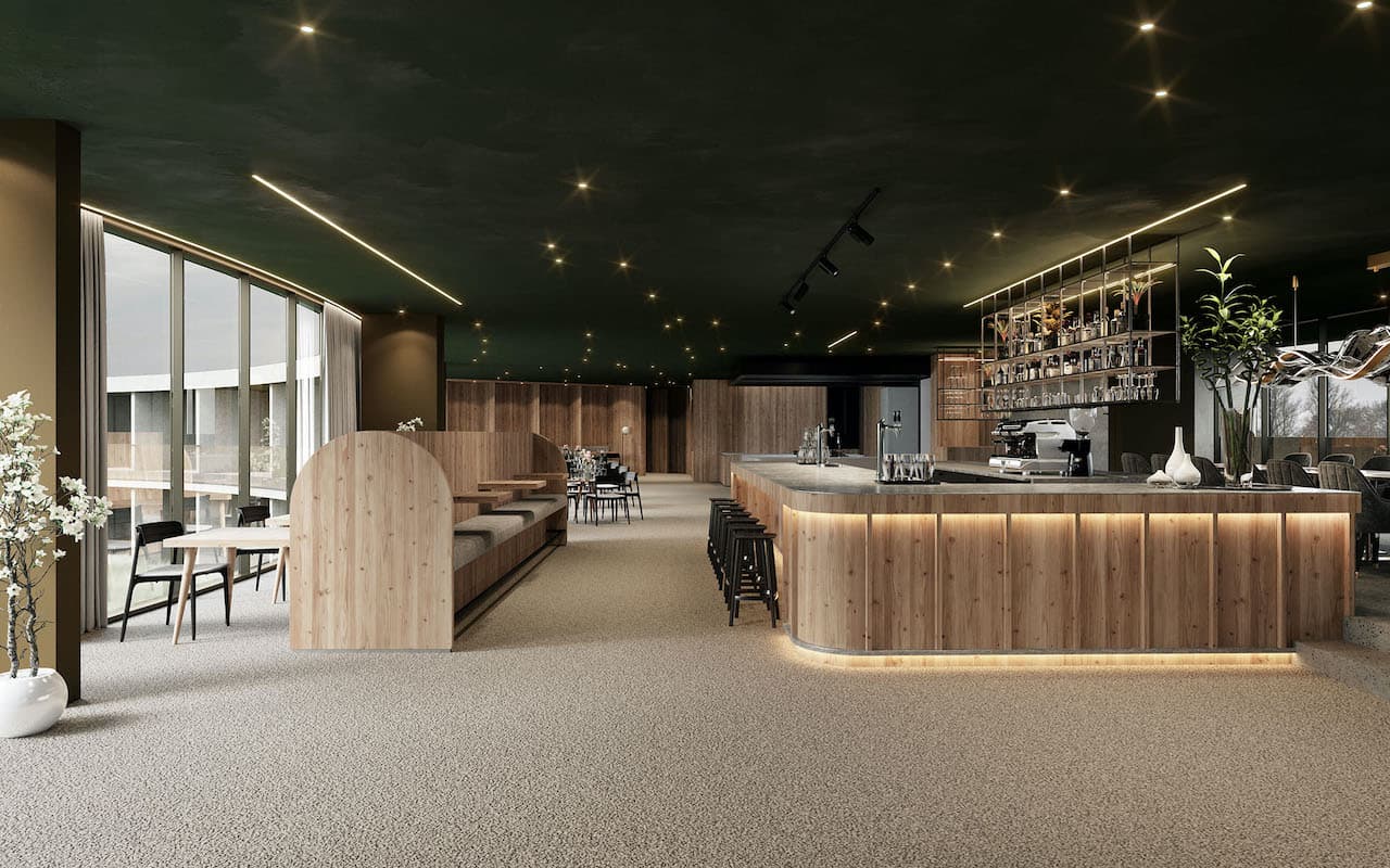 Se l’effetto immediato in termini abitativi coinvolge il comfort interno, con temperature ottimali in estate e in inverno, l’isolamento termico ha un ricaduta economica in termini di riduzione dei costi di gestione dell’energia. All’utilizzo di tali fonti rinnovabili, che concretizza la visione ad ampio raggio del titolare Christian Lechner, amministratore di Carron Bau società del Gruppo Carron, e interessa ogni zona della struttura, si aggiunge la scelta di sfruttare le possibilità offerte dal pozzo artesiano, con acque che risalgono spontaneamente dal sottosuolo. A tutto ciò non può che abbinarsi l’idea di favorire la diffusione dei veicoli elettrici, mettendo a disposizione degli ospiti e-bike, e-quad e postazioni per il caricamento di macchine elettriche. A disposizione 40 posti parcheggio coperti.