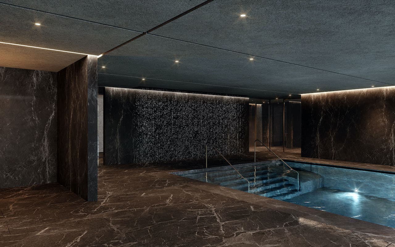 È però seguendo i materiali che l’impressione si fa ancora più forte. Il calcestruzzo, il marmo e la roccia granitica costituiscono la struttura principale della Spa, che offre una vasta gamma di servizi, tra i quali una palestra con sala yoga, una zona relax, una piscina di 1,40 metri di profondità per 25 metri di lunghezza – che prosegue verso l’esterno, dove permette di godere di un rinfrancante bagno open air anche durante le stagioni più fredde, grazie all’acqua riscaldata in inverno – due cabine per massaggi, la sauna al vapore, la sauna finlandese e il percorso Kneipp, con un cammino che comincia al chiuso e termina nel laghetto balneabile in estate, alimentato da acqua naturale priva di cloro, proveniente dal pozzo artesiano. Ogni elemento è pensato per donare un’esperienza di purificazione e rigenerazione per la mente e il corpo.