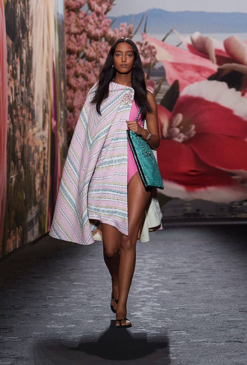 “Questa collezione Ready-to-Wear Primavera-Estate 2024 è un inno alla libertà e al movimento, e racconta una storia che ha le sue origini nei giardini di villa Noailles”, spiega Virginie ViardDirettore Artistico Chanel. Costumi da bagno, babydoll di organza, abbigliamento sportivo e abiti da sera seguono tutti lo stesso percorso. Qui gli abiti sono liberati dalle costrizioni ed emancipati dalla struttura. La vita è bassa, i tacchi sono piatti. Gli abiti sono leggeri e molto elastici: senza spalline, senza fodera. Gilet, cardigan indossati come abiti con senso di libertà, pantaloni con tasche, shorts a gamba larga e gonne asimmetriche, fiocchi e pieghe completano questo studio sulla vita in movimento. Una certa idea di sensualità attraversa gli abiti, camicie, sottovesti, top di reggiseno – in organza nera, la cui trasparenza consente infinite stratificazioni.