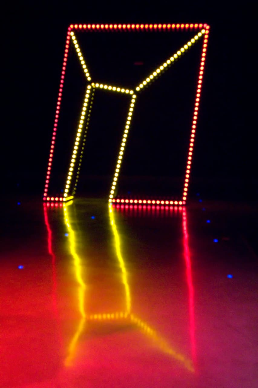 Nel libro di Daniele Del Giudice “Staccando l’ombra da terra” l’autore ci parla della gioia che si prova a staccare l’ombra da terra ma anche del panico che ci invade. Attraversare la nostra soglia – superare i nostri limiti – ogni giorno è un rischio, una sfida verso noi stessi; ed ecco che Chiara Dynys ripropone la metafora del senso del passaggio attraverso Gate of Heaven, l’immagine di un grande portale, simbolicamente costituito dalle luci delle piste di atterraggio gialle e rosse degli aeroporti. L’esposizione inoltre, in primo piano, presenta sette porte di vetro di Murano fuso, dal titolo Giuseppe’s Door, che simboleggiano, con colori diversi e attraverso la magica opalescenza del vetro illuminato, le sette porte di Milano che sono il vero accesso alla città. Le sette sculture, realizzate da Berengo Studio, Murano e messe a disposizione per il progetto da BUILDING, Milano accompagneranno il passeggero/visitatore verso la porta di entrata e/o di uscita del più grande aeroporto di Milano, in base alla personale destinazione di ognuno.