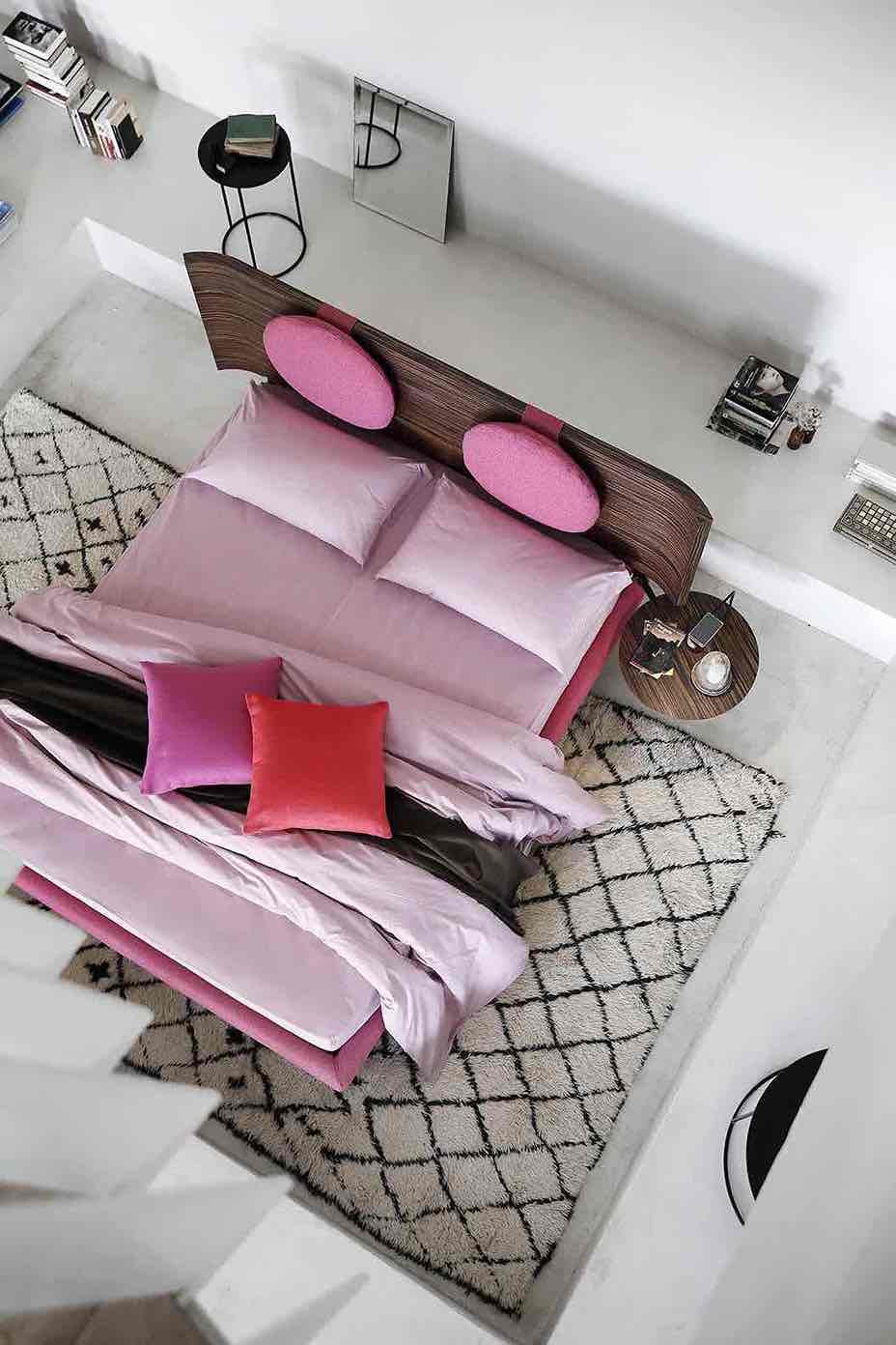 Il modello Hug 01 Round è un letto insolito, forte e deciso. Animo robusto e cuore dolce. Un abbraccio accogliente e protettivo. I due morbidi cuscini circolari, rimuovibili e sfoderabili, sono l’elemento caratteristico e funzionale di questo letto. Realizzati in schiumato ad alta densità e rivestiti con tessuto abbinato al giroletto, arricchiscono e aggiungono comfort al pannello della testata in legno, disponibile a sua volta in diversi colori e finiture. Un gioco di linee curve, infinite possibilità di abbinamento e personalizzazione. Per chi ha necessità di ottimizzare lo spazio e di ordinare la camera in modo rapido ed efficace, il modello Hug 01 Roundconsente di posizionare degli ergonomici tavolini rotondi su entrambi i lati del letto.