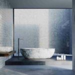 Anche Pearl nasce dall’incontro tra due materiali, ma anche tra due concetti antitetici: la collezione disegnata da Alberto Apostoli rievoca il motivo dell’ostrica e la sua dualità tra l’esterno irregolare, riprodotto con il marmo Olive Grey tramite una lavorazione materica mai uguale e realizzata a mano, e l’interno liscio e chiaro, ottenuto mediante una resina con finitura madreperla. Si aggiunge il sistema Airpool, con un piacevole sistema di micro idromassaggio per una soluzione dedicata al benessere.
