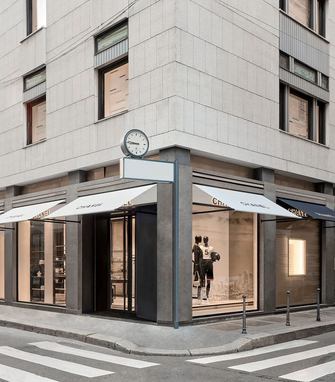 Questa nuova boutique, in aggiunta alla boutique di via Sant’Andrea, arricchisce e contraddistingue l’esperienza di shopping milanese. Per questo progetto, Peter Marino che continua a reinterpretare armoniosamente i codici estetici della Maison in tutto il mondo, ha proiettato l’eleganza parigina e la modernità senza tempo di CHANEL in un nuovo ambiente sublimato da sontuosi tocchi personalizzati come tappezzerie, tweed eleganti nelle tonalità avorio e sabbia, finiture a mano e lussuose moquette in lana.