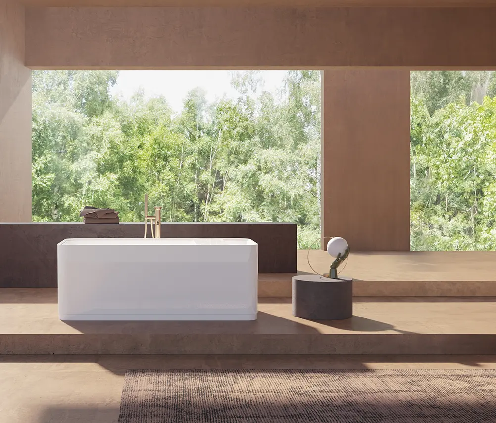 La stessa accogliente rotondità caratterizza Bali: l’impercettibile asimmetria delle estremità, unita ai bordi eccezionalmente alti, avvolge in un abbraccio immersivo e rilassante. La forma classica si unisce ad un’altezza di ben 62 cm, dando vita ad una vasca da bagno che si integra alla perfezione in ambienti di ogni stile.