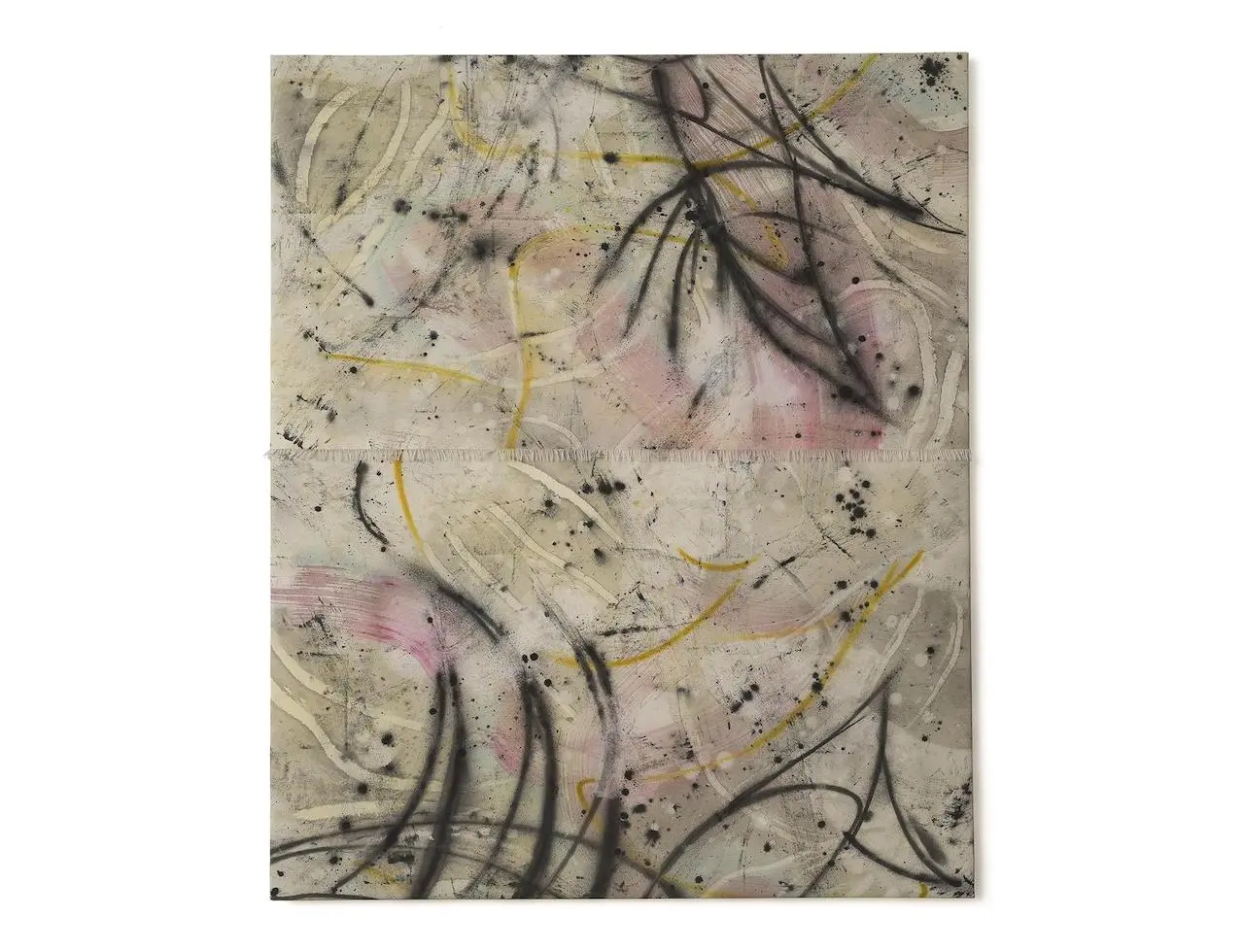 L’artista non è alla ricerca di un tratto consolatorio o nostalgico del dipingere, si serve piuttosto di uno strumento per essere più diretto, rapido ed essenziale. Borgonovo utilizza l’astrazione come manifesto di spontaneità e crudo istinto. Danza con la vernice spray e smalti diluiti su tele non preparate, creando opere che vibrano con energia viscerale e cromatica. La tela non è più supporto per il colore ma elemento fondamentale dell’opera: trattata quasi come tessuto per le stampe di alta moda insieme al segno diventa la protagonista del lavoro, il mezzo per tradurre la sua narrativa astratta attraverso colori diluiti e tratti spontanei.