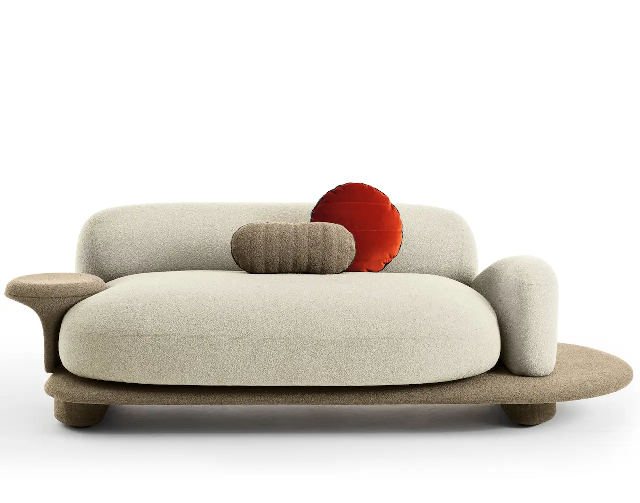 Le sue forme morbide e accoglienti come gli intrecci di una preziosa catena aprono al dialogo fra i vari elementi: perfetti nella loro unicità, sorprendenti quando combinati insieme. Si tratta di un divano componibile attraverso l’utilizzo di 12 moduli disponibili, la struttura poggia su piedini, è accessoriabile e sfoderabile nella versione in tessuto e in pelle. La sua personalità viene supportata dal suo caratteristico basamento che funge da pratica isola d’appoggio già inserita nel divano.