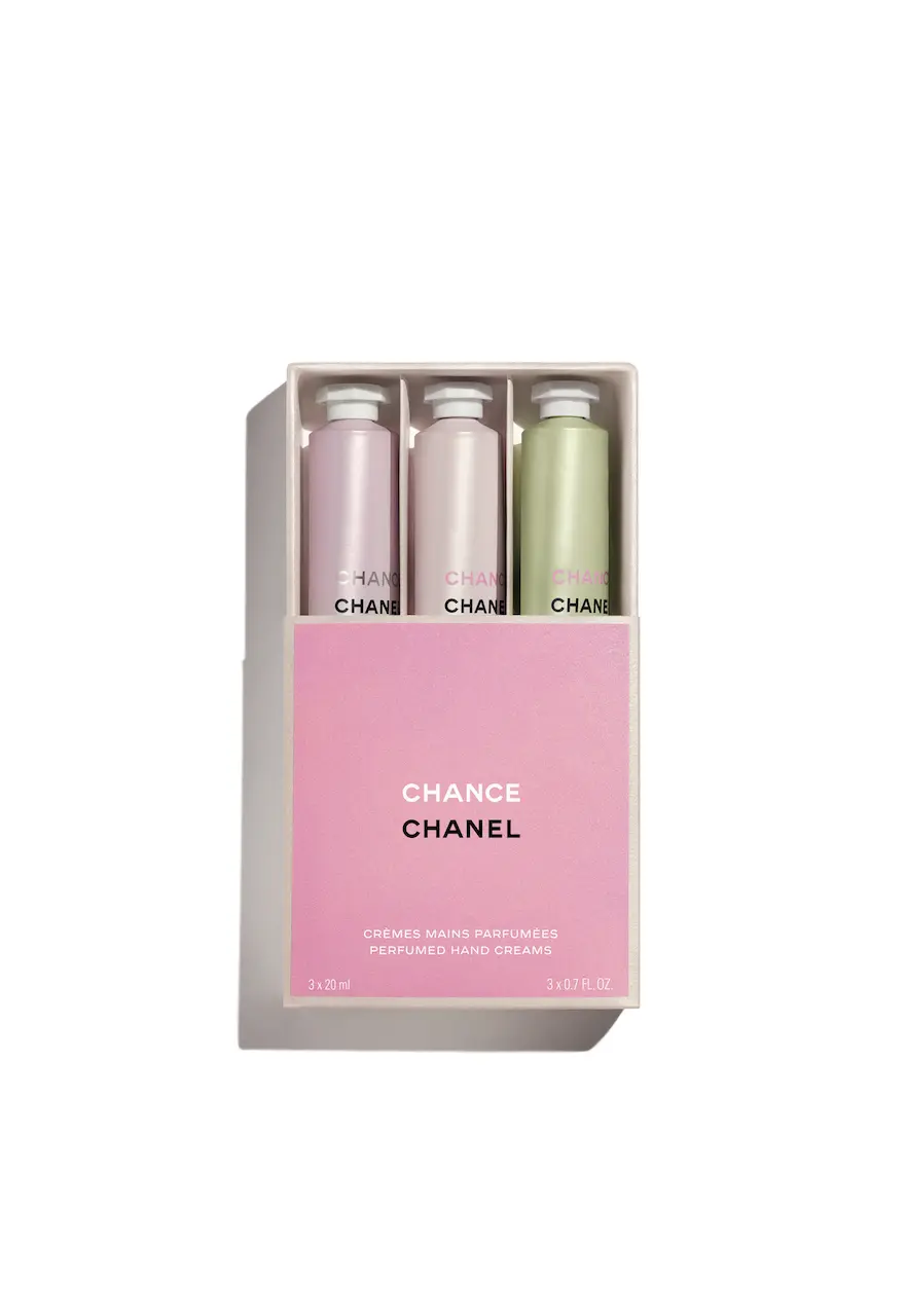Tre creazioni profumate, in edizione limitata, per esaltare il ricordo della fragranza CHANCE de CHANEL e idratare le mani con una formula dalla consistenza fine e leggera che si fonde delicatamente sulla pelle. Grazie al pratico formato da viaggio, i tubetti sono perfetti da portare sempre con sé in borsa, per un nuovo gesto di profumazione da ripetere in ogni momento della giornata.