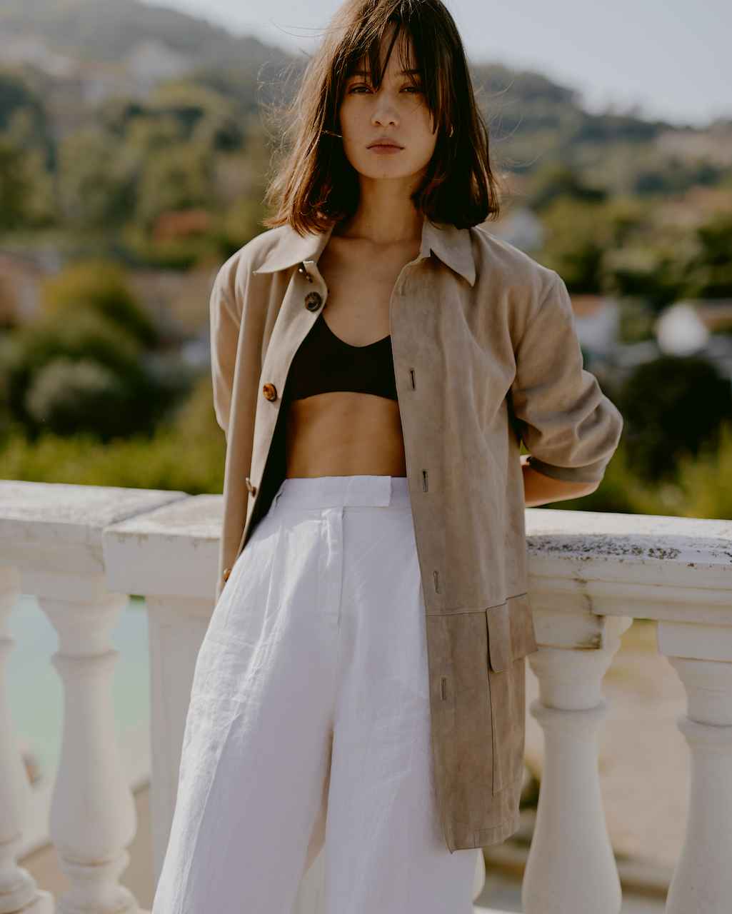 Per lei, capi dall’allure vacanziero ma dal comfort quotidiano. La bellezza dei look si calibra sempre tra una qualità artigianale totalmente Made in Italy e uno stile intramontabile, in cui l’allure dal sapore Italo-francese rafforza lo charme. Il ready-to-wear propone un cappotto vestaglia in double cashmere superfine, dai colori marini, da indossare a piedi nudi sulla spiaggia deserta alle prime luci dell’alba.