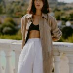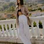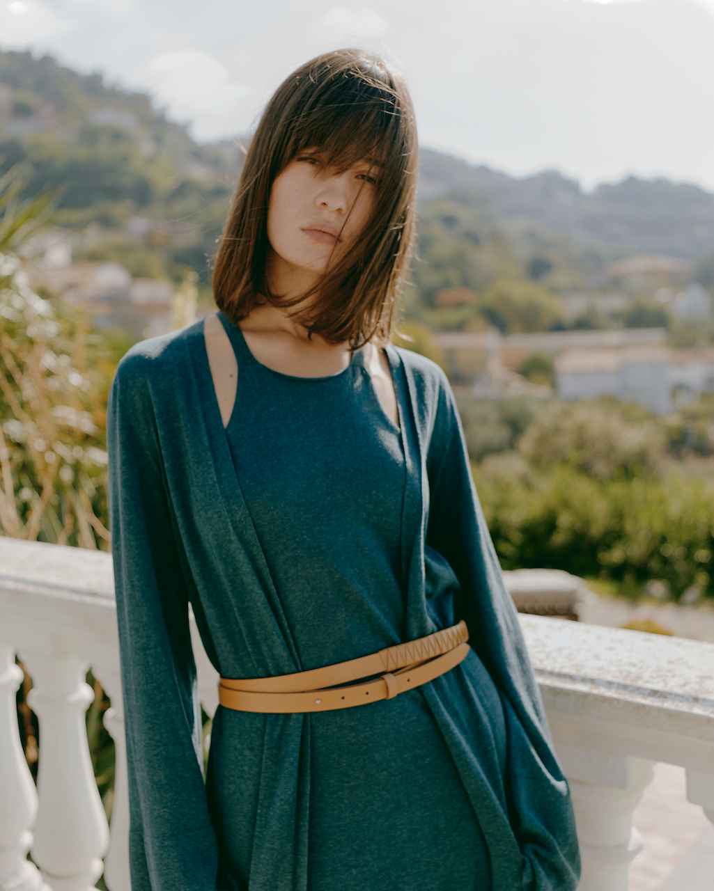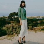 Un leggerissimo suede è la proposta della shirt-jacket e pantalone palazzo da indossare anche in bicicletta con disinvoltura. Abito pareo e ampi caftani in seta habotai tinta in capo dai colori polverosi strizzano l’occhio al tema della collezione con look super chic. La proposta maglieria si sviluppa tra capi di cashmere dalla vestibilità rilassata sino alla vestibilità più femminile che segue la silhoutte senza segnarla. Righe disomogenee come onde del mare cadono sul cardigan lavorato compatto, ottimo alleato per le serate più fresche.