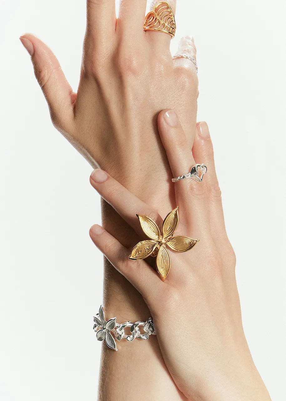 Si tratta di gioielli placcati in oro a 18 carati o in argento sterling, disegnati per la terza volta da Gala Meyer per Desigual. Con questo lancio, il marchio mantiene il proprio impegno verso la qualità e i design non convenzionali.