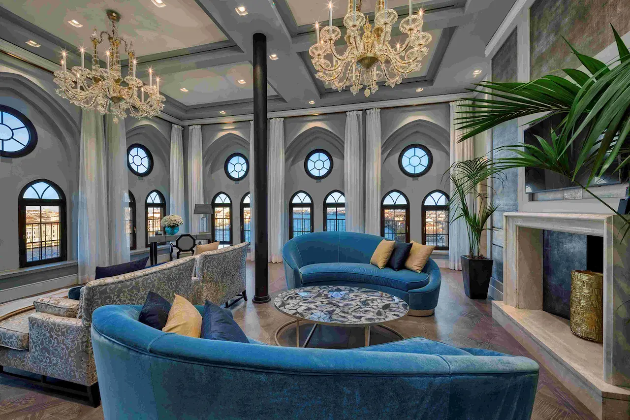 La Suite Presidenziale è un esclusivo nido d’amore, con i suoi spazi ampi e suggestivi, la sua eleganza sussurrata, il calore e il fascino dell’interior decoration reso unico dalla magnifica vista su Venezia. La torretta, cui si accede in esclusiva dalla suite, è uno dei punti più alti della laguna, ed è senza alcun dubbio il luogo più romantico della città. Gli ospiti vengono accolti da un calice di prosecco accompagnato da fragole, e dopo un momento di relax nelle stanze e nei saloni, potranno indulgere nella zona wellness privata della suite, concedendosi un momento di benessere nella jacuzzi e un meraviglioso massaggio di coppia.