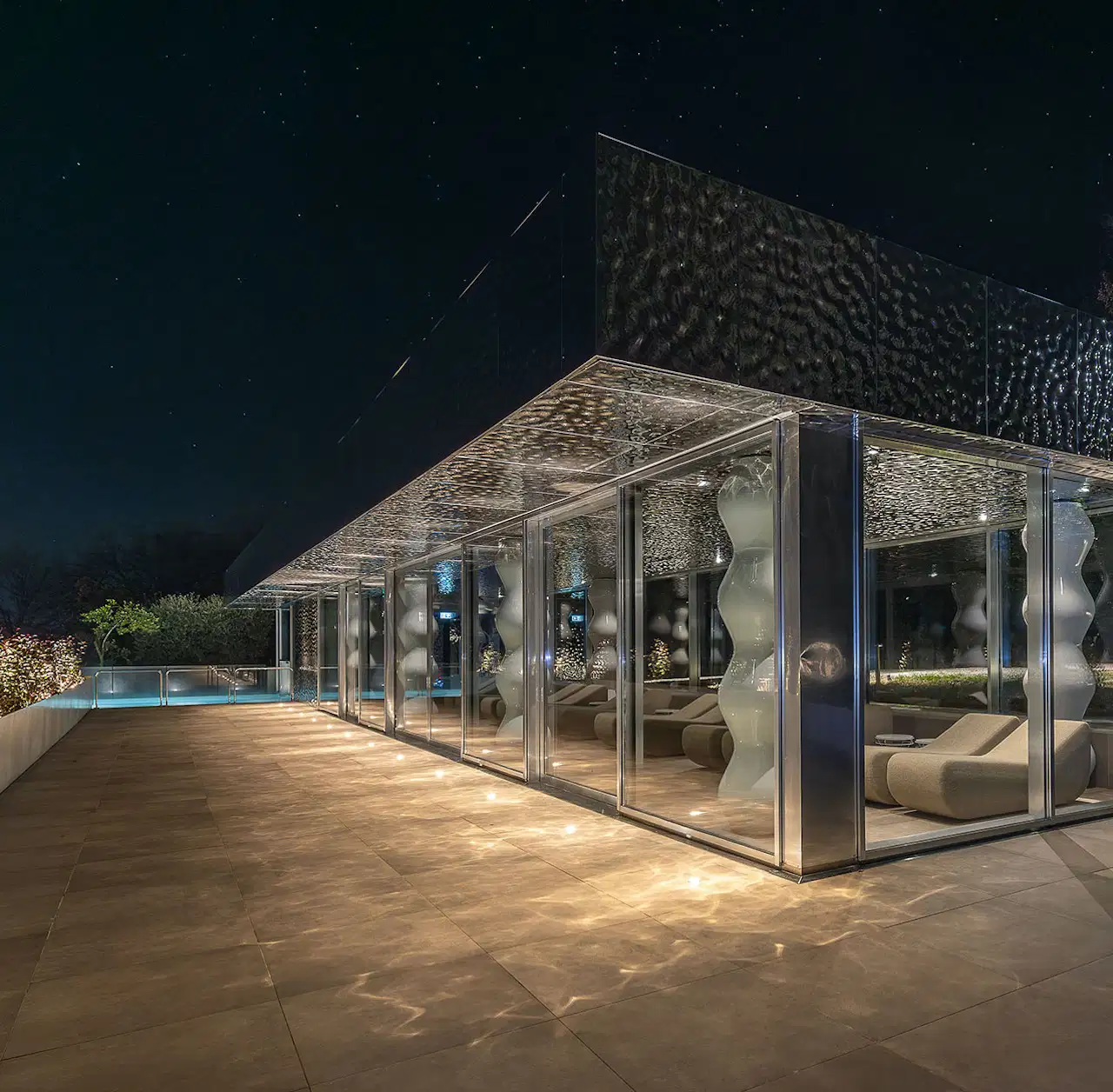 Pensato per ampliare l’esperienza del percorso acque già presente nell’albergo e progettato sempre dallo stesso architetto e designer, Simone Micheli, Oasi del Parco è un luogo magico dove la luce naturale risalta ed amplifica i colori brillanti degli elementi in cui è avvolto: le sfumature di verde diventano via via più vivide, mentre sarà uno spettacolo per gli occhi ammirare il susseguirsi degli azzurri del cielo in continua evoluzione.