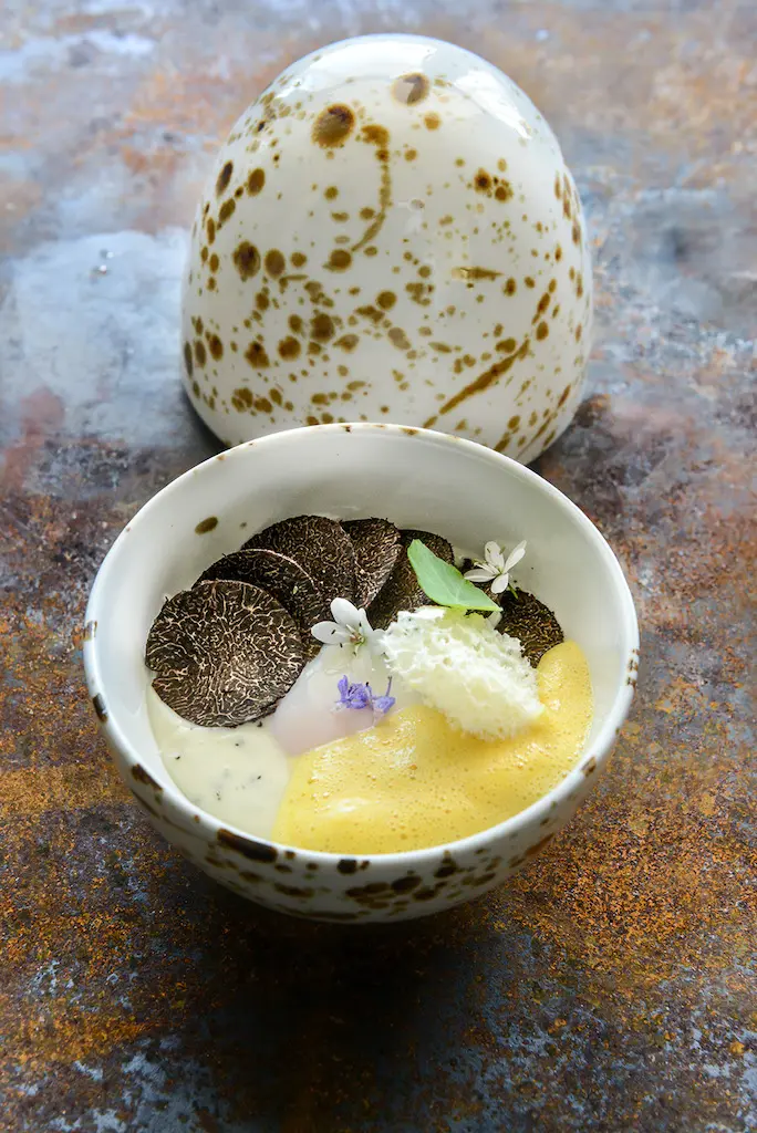 Non vanno dimenticati neppure i tavoli impreziositi dai motivi a onde e i paraventi decorati con i coralli, completati a dovere dai lampadari simili a petali, che ricordano quelli del Balisier. Nel suo complesso, l’ambiente contribuisce a creare un rapporto intimo con lo chef e il suo mondo, in piena continuità con il lavoro svolto in cucina. I menù cambieranno ogni 3 settimane, in sintonia con la natura e secondo la disponibilità degli orti dello Chef.