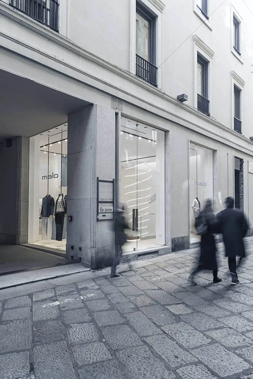 La nuova boutique di Malo, iconico brand specializzato in cashmere e fibre naturali di alta gamma, rappresenta una vera e propria oasi di lusso e sostenibilità nel cuore di Milano. Con tre vetrine su strada e uno spazio di 190 metri quadri su due piani, il flagship store non è solo uno spazio commerciale, ma rappresenta una fusione di culture, un connubio tra Oriente e Occidente, nelle scelte di certe finiture.