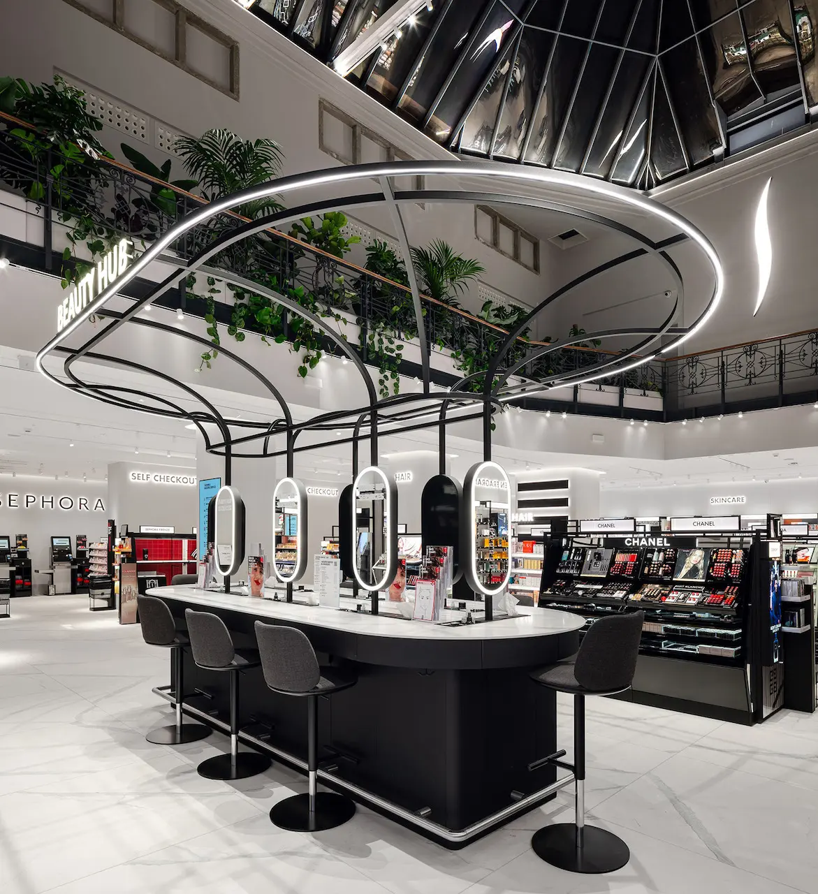Il nuovo flagship store Sephora Firenze nasce dal progetto di recupero della  storica location Palazzo del Bazar Bonaiuti ed è contraddistinto da un’opera di ristutturazione volta a valorizzarne gli elementi originali integrandoli con il design contemporaneo e le linee fluide che caratterizzano i negozi Sephora di ultima generazione.