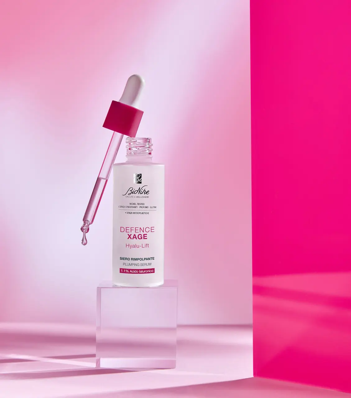 Quest’anno, BioNike presenta un nuovo valido alleato che si aggiunge alla vasta gamma di referenze PRIME e ULTIMATE di Defence XAGE. Si tratta di HYALU-LIFT, il Siero concentrato con acido ialuronico che coniuga l’azione liftante immediata a quella progressiva anti-age.