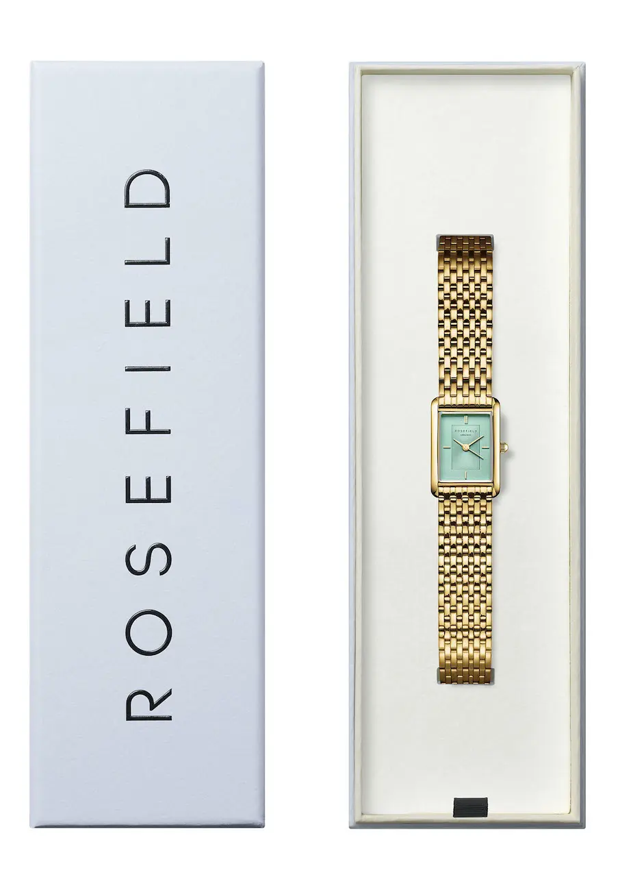 La sottile leggerezza del segnatempo è rimarcata dal bracciale in acciaio a 9 maglie delicato e flessibile dalla trama fitta e affascinante. Gli orologi della linea Heriloom di Rosefield sono declinati in due versioni, cassa e bracciale d’acciaio con quadrante silver e cassa e bracciale in acciaio dorato con quadrante verde menta, un tono che include un twist inatteso nella collezione. I segnatempo montano un movimento al quarzo tre sfere e sono impermeabili fino a 3 atmosfere.