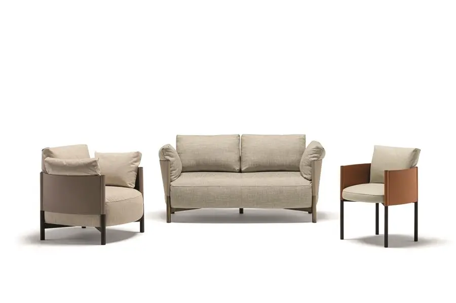 Termina la collezione Syren il divanetto caratterizzato da un unico cuscino di seduta dalla forte presenza scenica, morbido e accogliente. L’ampia fascia in cuoio contiene i voluminosi cuscini garantendo funzionalità e armonia tra gli elementi nonché un tocco di eleganza e raffinatezza. Syren rivela la propria personalità nei dettagli e nelle finiture, offrendo la possibilità di personalizzare gli elementi imbottiti con tutti le pelli e i tessuti a catalogo.