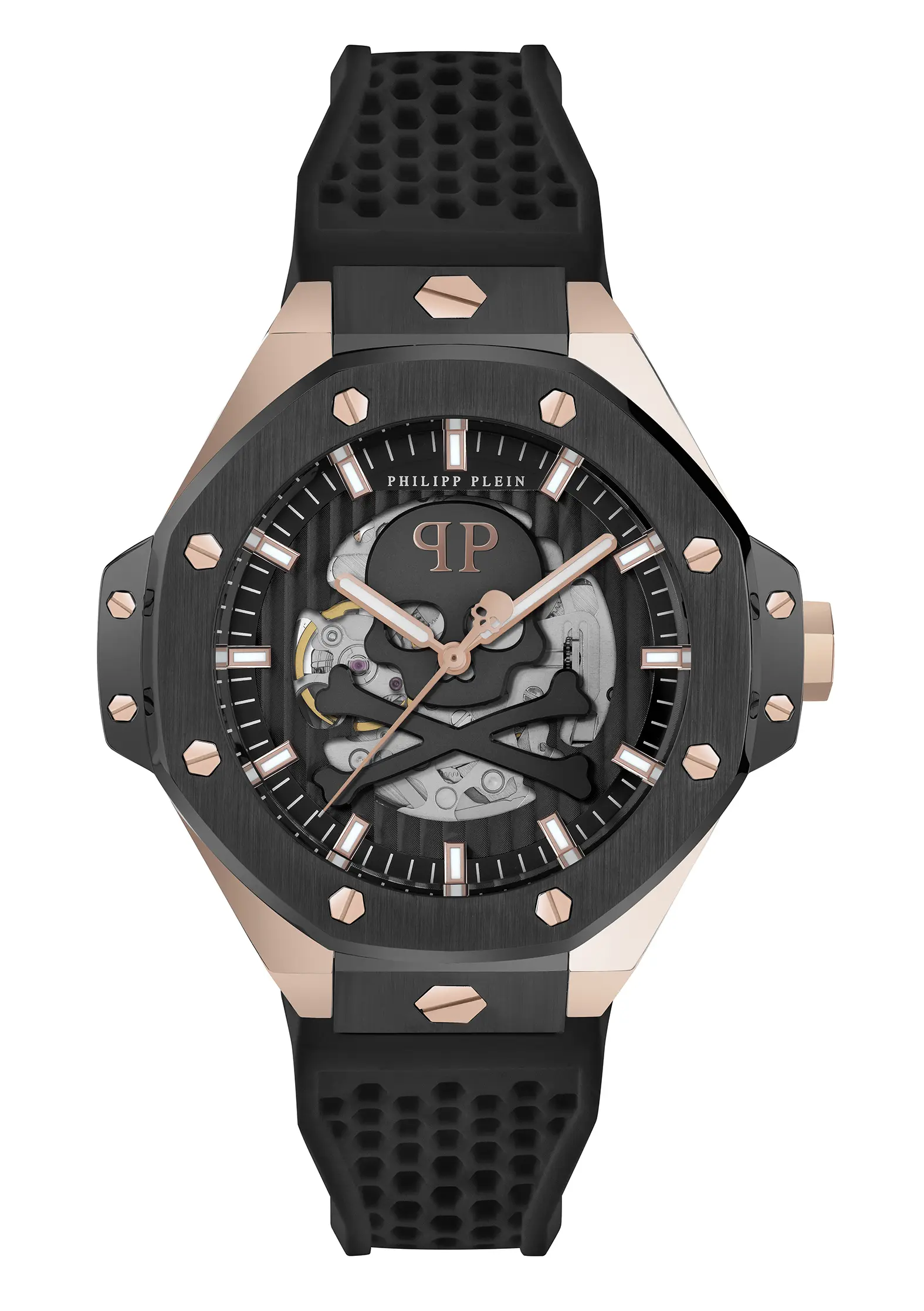 Questo orologio eccezionale incarna la fusione tra tradizione e innovazione, mostrando l’impegno già consolidato del marchio PHILIPP PLEIN verso l’eccellenza nell’orologeria di lusso. Realizzato con estrema attenzione nella cura dei dettagli, il Plein $keleton Royal è caratterizzato da una cassa che misura 46 mm di diametro – Cassa IP bicolore con dettagli IP oro rosa e dal design audace che cattura subito l’attenzione.