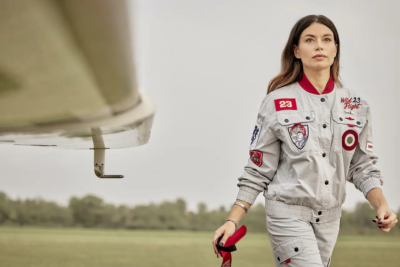 Capsule AERONAUTICA LOVERS Grafiche a contrasto, patch e ricami dal forte impatto per una donna grintosa e moderna. I capi valorizzano la figura femminile, hanno un mood contemporaneo e sono realizzati con mix and match di materiali e texture. Fra tutti spicca l’iconica giacca in pelle color block di ispirazione race, dalla vestibilità perfetta e arricchita da una lavorazione traforata. I colori sono facili da abbinare, bianco, blu navy e grigio perla mentre una vivace tonalità di rosso sottolinea i dettagli.