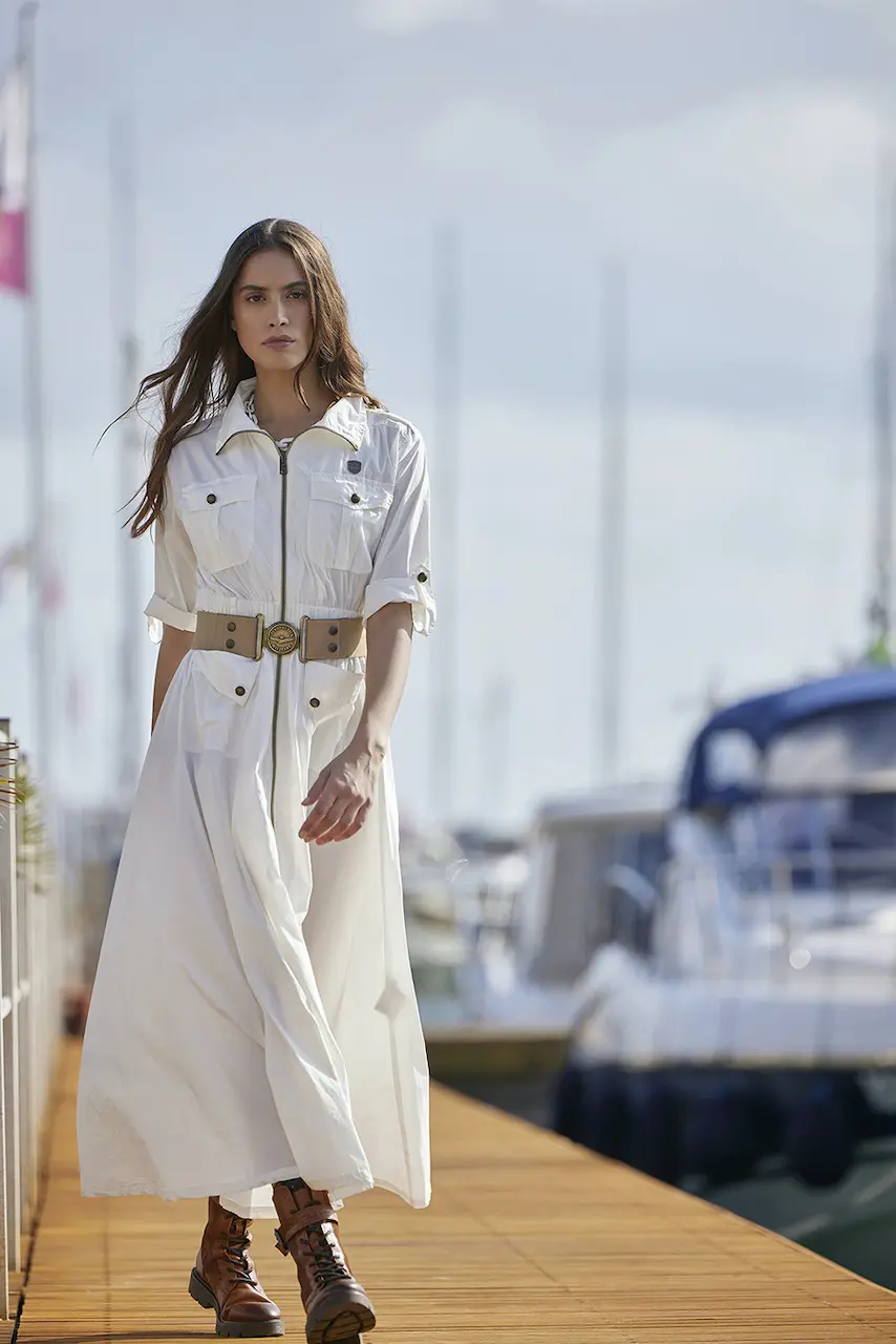 Linee rigorose, tagli moderni e capi con dettagli che richiamano il mondo military come tasche, tasconi, mostrine e alamari per donne sicure e dalla personalità unica. Originali T-shirt di lunghezze diverse e un’ampia selezione di abiti con varietà di vestibilità e stili, caratterizzano questa linea dove particolare attenzione è riservata alla cartella colori con nuances basiche e morbide come il giallo vaniglia, il verde salvia, il kaki e la stampa camouflage perfetta per costruire look dailywear dallo stile casual.