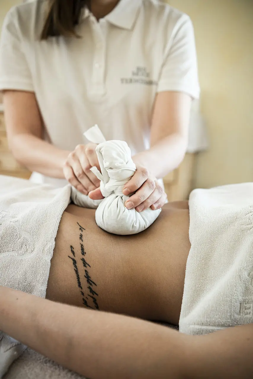 Direttamente al Bad Moos Aqua Spa Resort dalla Thailandia arriva il Massaggio Thai, un trattamento che coinvolge gambe e piedi attraverso pressioni fisiche e stretching, con lo scopo di aprire i Sen e liberare l’energia. Ideale per migliorare la circolazione e il movimento delle articolazioni, è indicato per gambe con sensazione di affaticamento, gonfiore e pesantezza. Il trattamento agisce sui canali energetici e i punti di riflesso degli organi interni, con una sua specifica funzione riequilibrante del sistema energetico generale.