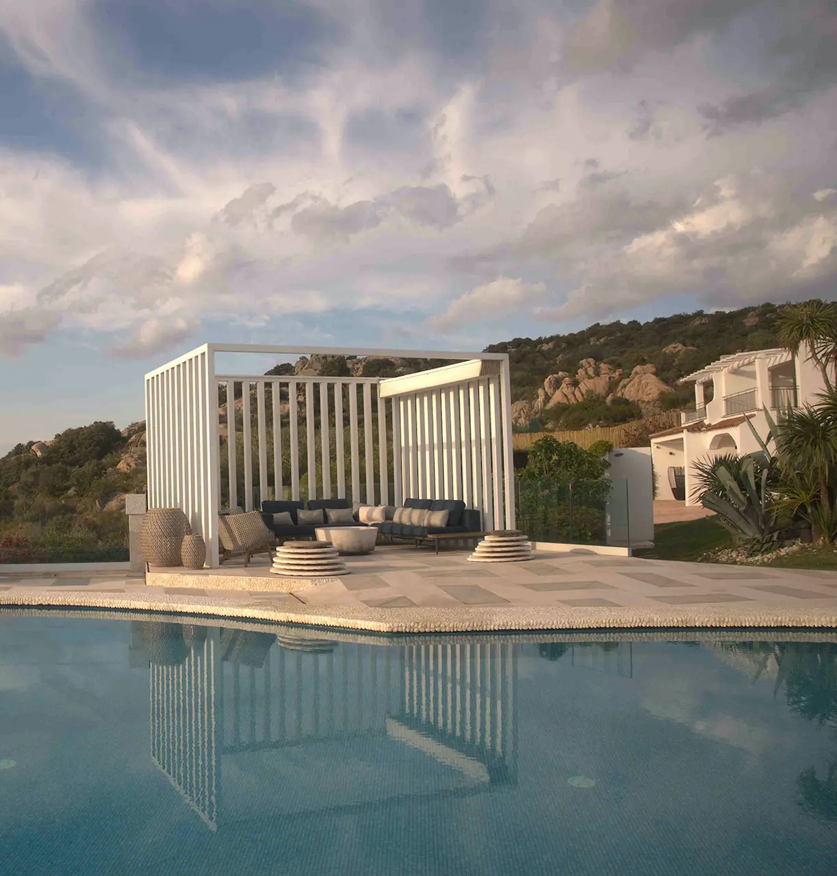 La sinuosa piscina, circondata da comode chaise long e accoglienti cabane è il luogo perfetto per crogiolarsi al sole o rilassarsi all’ombra, leggere o ascoltare musica, rinfrescarsi con un tuffo e tonificarsi con una nuotata.
