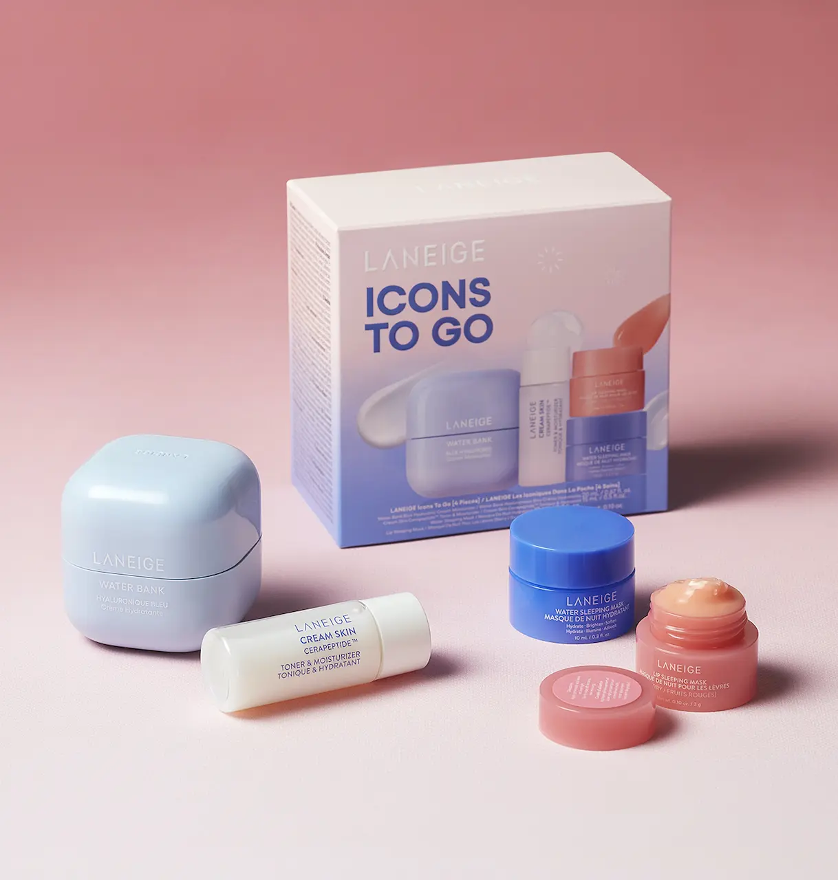 Il Nuovo Kit Icons to Go by Laneige è tutto ciò di cui si ha bisogno per mantenere il naturale splendore della pelle, mentre ci si gode una breve fuga fuori città o una meritata vacanza. È la dose essenziale di coccole da portare sempre con sé, dal toner all’idratante alle maschere notturne per la pelle e le labbra.