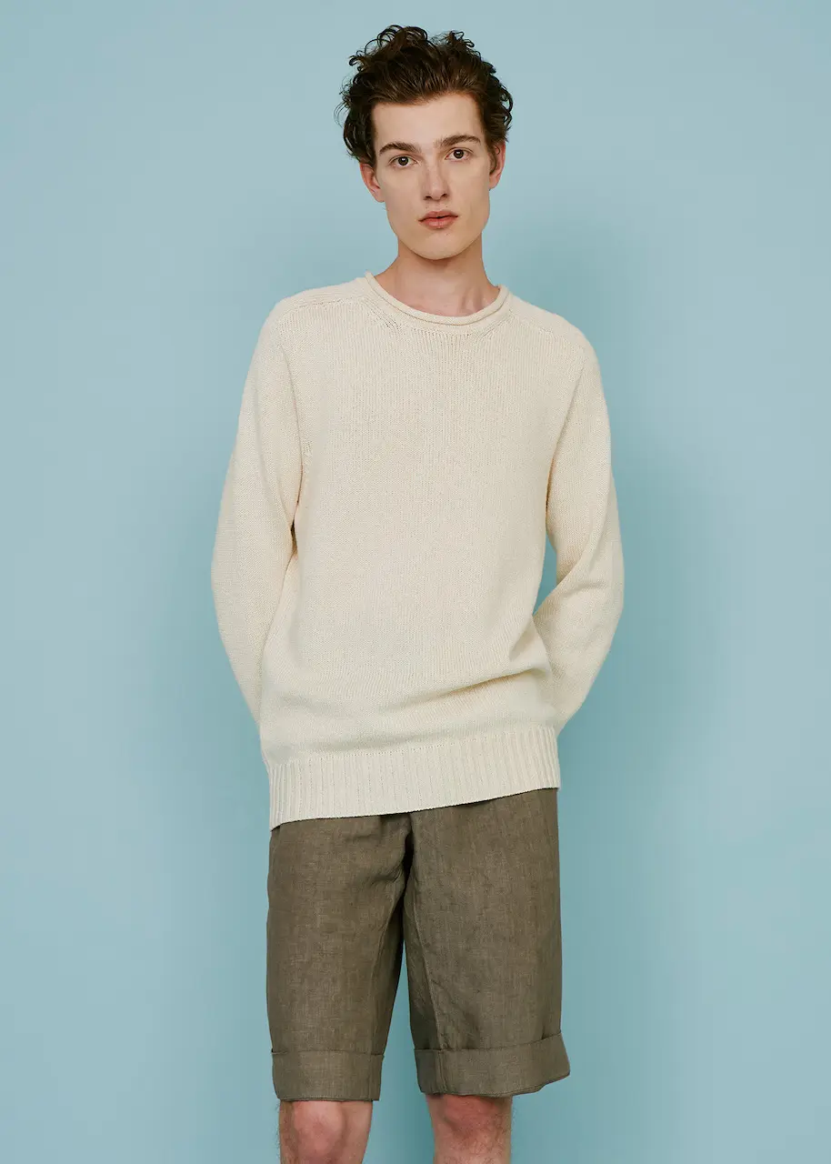 Tra le proposte in puro lino di Malo ci sono i capi uomo: dalle t-shirt alle polo, dal completo giacca e pantalone, dai bermuda alle camicie classiche a quelle con collo alla coreana. In particolare, nelle camicie, oltre al filato anche i dettagli fanno la differenza, come i bottoni di madreperla e la tintura artigianale per un effetto più “old” e polveroso.