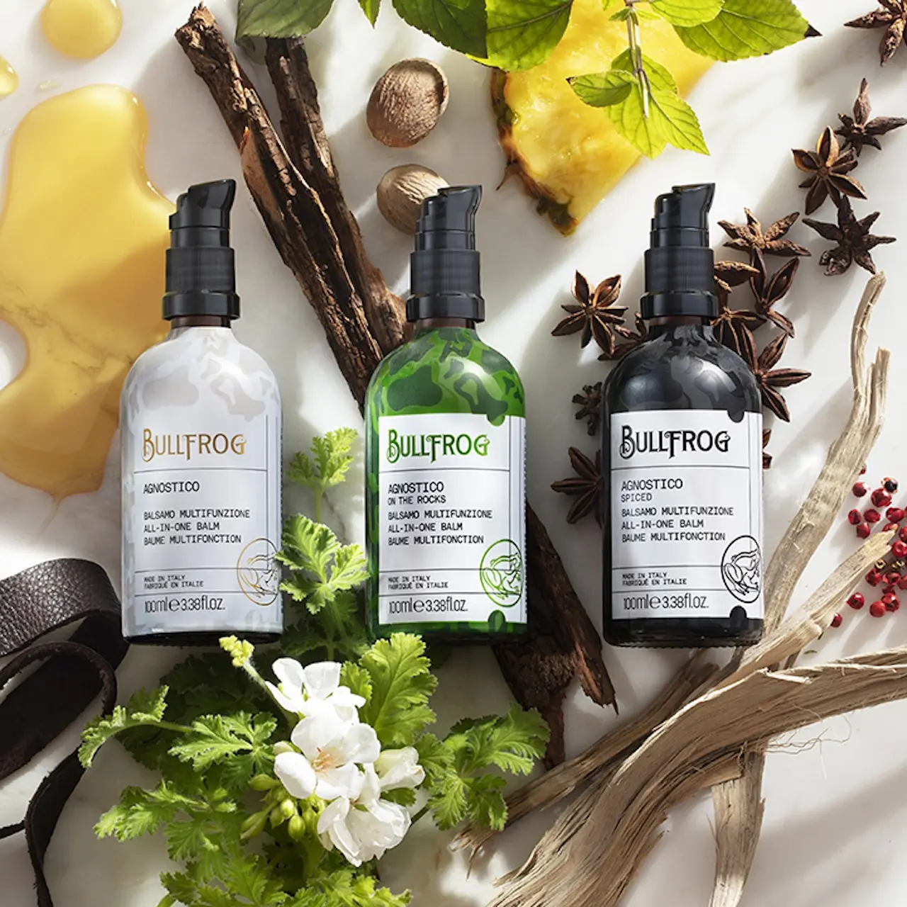 Una saga appassionante che diventa trilogia: protagonista Agnostico, prodotto iconico del brand Bullfrog, pronto a farsi in tre per conquistare tutti i grooming lovers. Questo film d’amore per il grooming comincia dall’anice: era il 2013 quando questa pianta originaria del Mediterraneo orientale e dell’Asia Minore, una delle poche spezie coltivate in Occidente, incontra Bullfrog. E fa la storia. Dalle molteplici sfaccettature aromatiche e dalle fresche note verdi, l’anice diventa, infatti, l’ingrediente star del leggendario Agnostico Balsamo Multifunzione. Oggi le sue note particolari, perfette per olfatti unconventional, caratterizzano il brand. Tanto che basta respirarle per sentirsi come trasportati all’istante in una barberia Bullfrog.