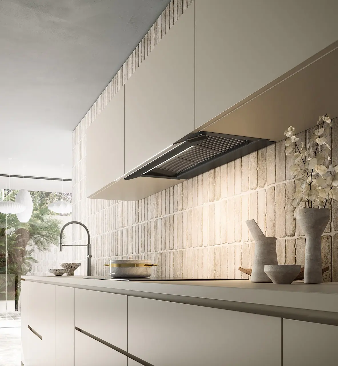 Inoltre, può contare su un potente motore da 800 m3/h e – nella sua versione filtrante – sugli speciali filtri rigenerabili, di lunga durata Carbon.Zeo, che grazie alla loro composizione e struttura, migliorano la performance di filtrazione, consentendo una manutenzione davvero semplice. La profondità della veletta è stata inoltre maggiorata, per consentire un’ottimale protezione dell’anta e la cattura dei fumi anche in corrispondenza di mobili con basi più profonde, in linea con le attuali tendenze.