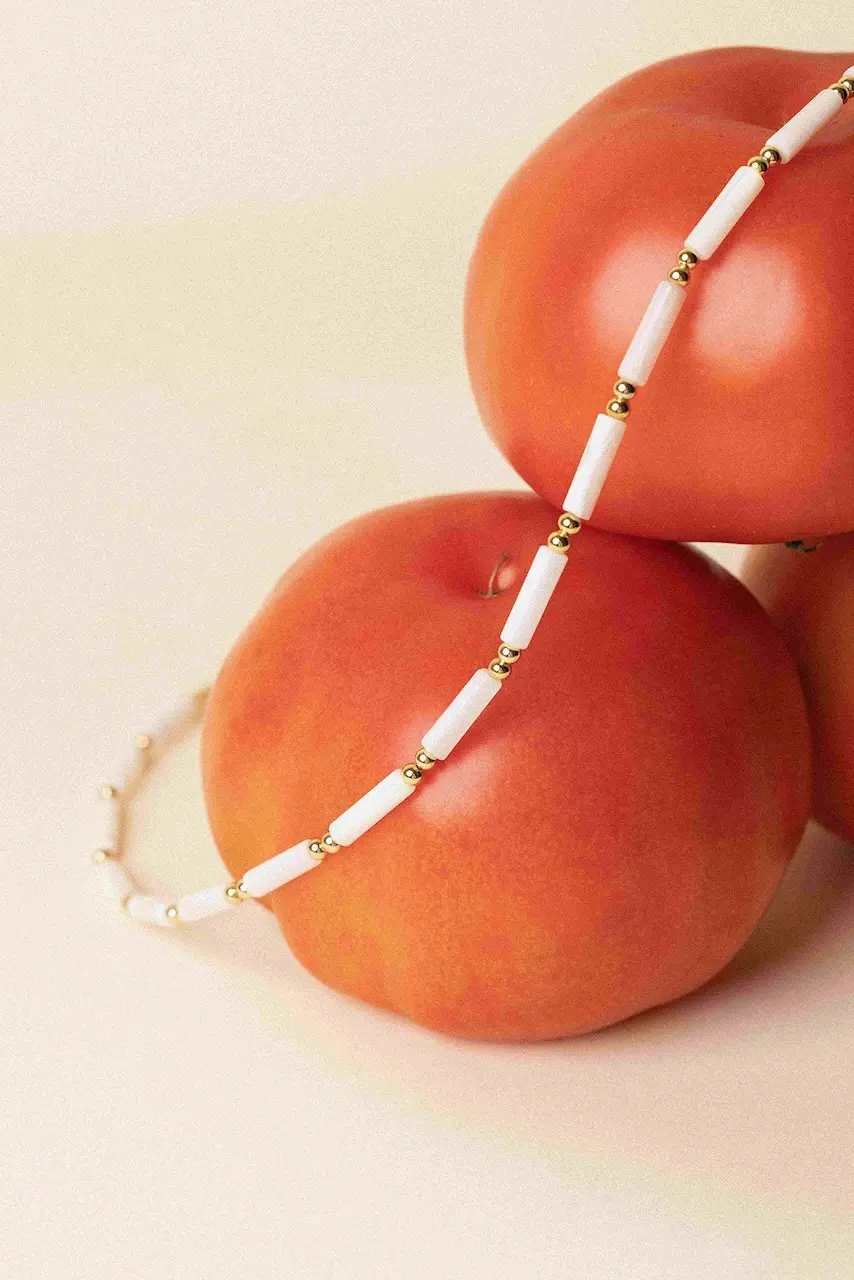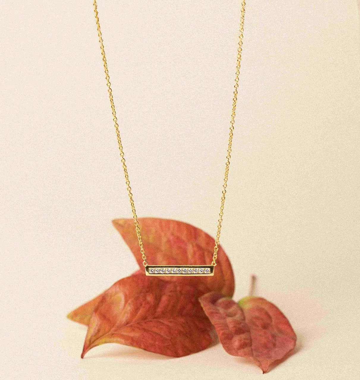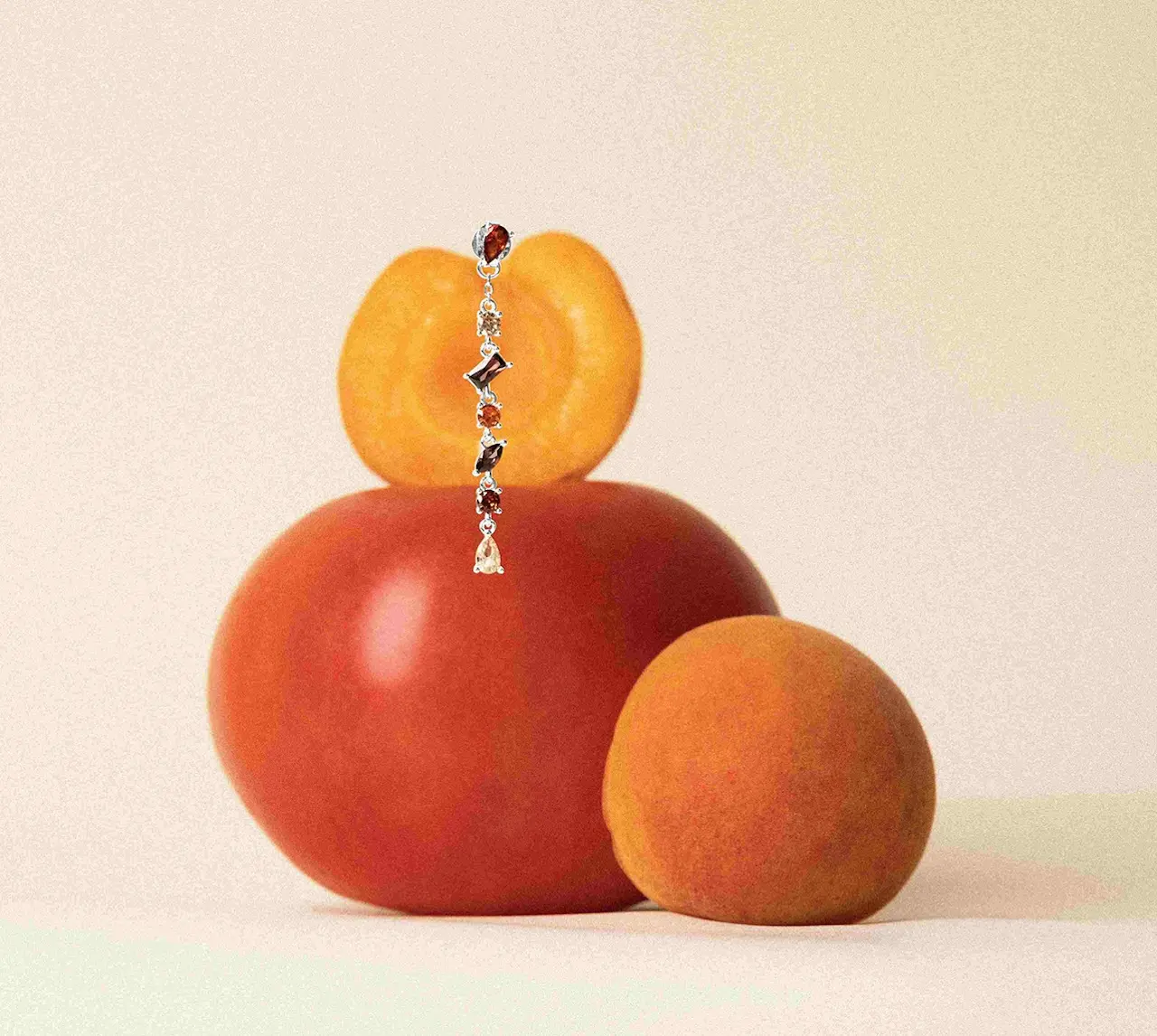 La collezione è composta da due collane di perle, un girocollo e una collana di perle grandi, orecchini con pietre colorate e dalle forme geometriche, quadrate e baguette, orecchini con forme dei soggetti tipici della stagione come foglie di quercia e funghi e le nuance vanno dal marrone al bordeux.