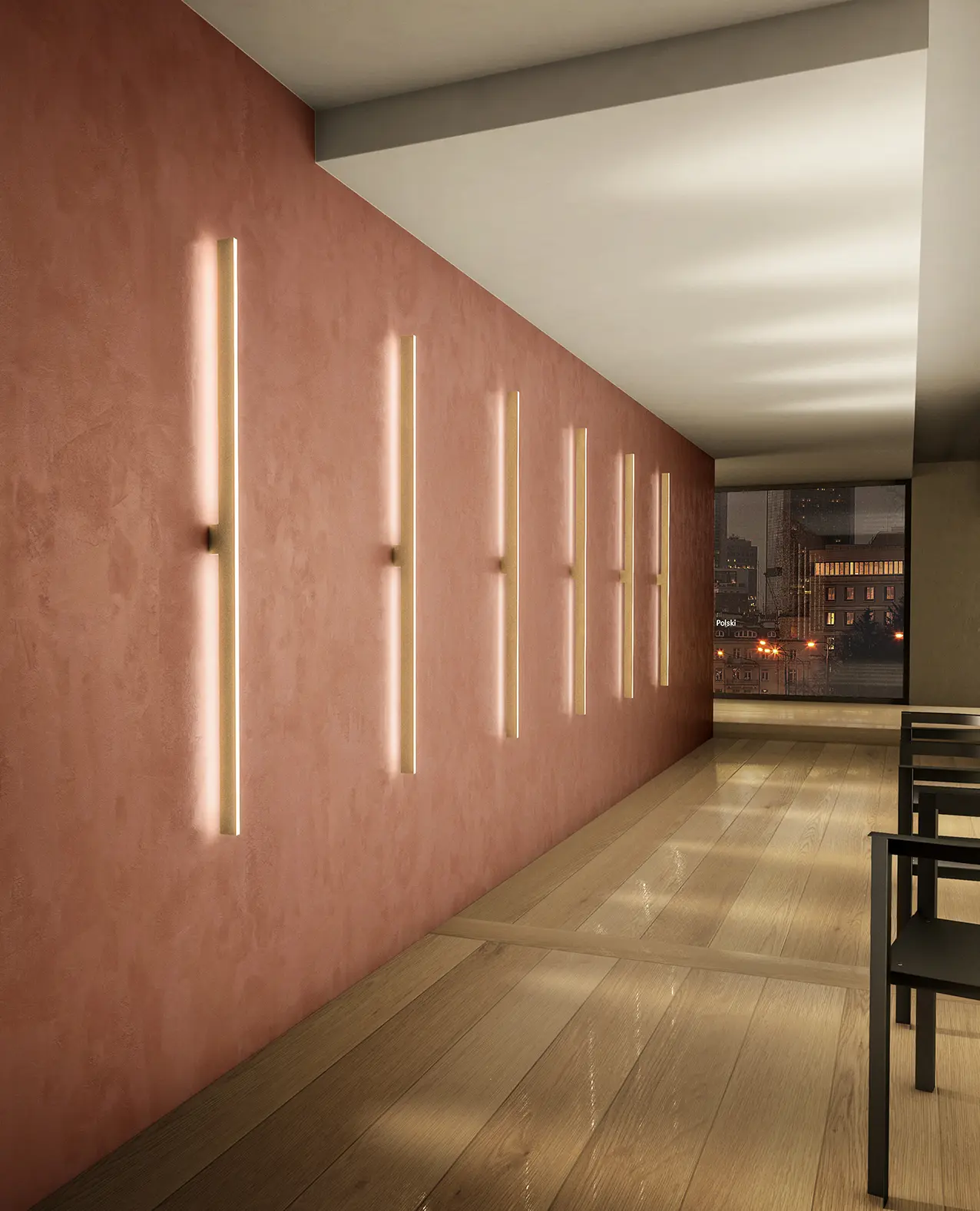 La soluzione illuminotecnica si distingue per il suo tratto grafico, le cui proporzioni affermano l’identità di una struttura ortogonale, rendendola un oggetto di design pulito e sobrio. Grazie a un innovativo processo di sottrazione, il corpo luminoso scompare una volta acceso, lasciando emergere solo la pura essenza della luce. Il profilo bifacciale permette di orientare la luce ed enfatizzarla a seconda del taglio, distribuendola nell’ambiente in modo puntuale e sofisticato, creando così diversi scenari d’intensità luminosa, adattabili a diverse esigenze di illuminazione, senza rinunciare ad un’atmosfera unica e raffinata.