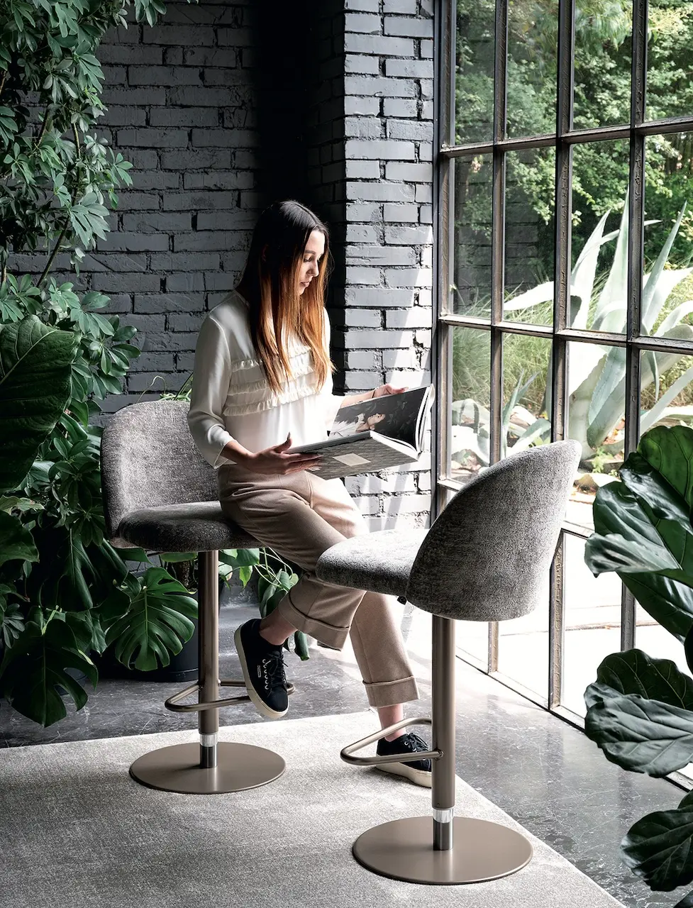 Altra novità è l’introduzione della base a gas regolabile in altezza e girevole per gli sgabelli Academy, Cosmopolitan, Ops!, Riley, Tuka, in tre colori: nero, canapa e lava, in linea con l’impronta stilistica del brand.