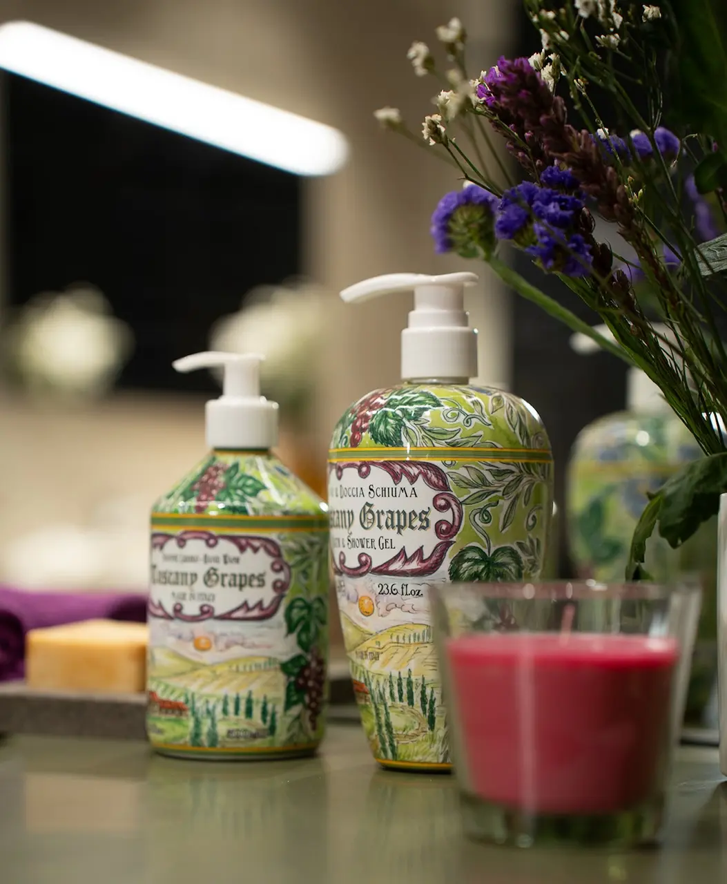 • Tuscany Grapes: una fragranza dove le colline toscane si svelano attraverso un bouquet di uva matura al sole, foglie di vite, rose e gelsomino, con un finale avvolgente di muschio e note ambrate.