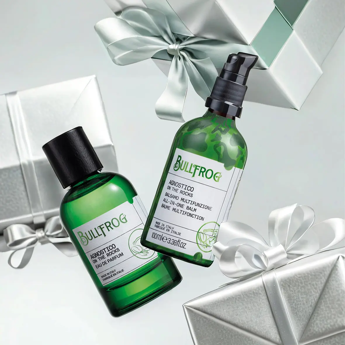 Nel kit: Agnostico On The Rocks Balsamo Multifunzione (100ml), reinterpretazione spumeggiante della fragranza classica; Agnostico On The Rocks Eau de Parfum (100ml), dalle note agrumate, legnose e ambrate, perfetto per sorprendere.