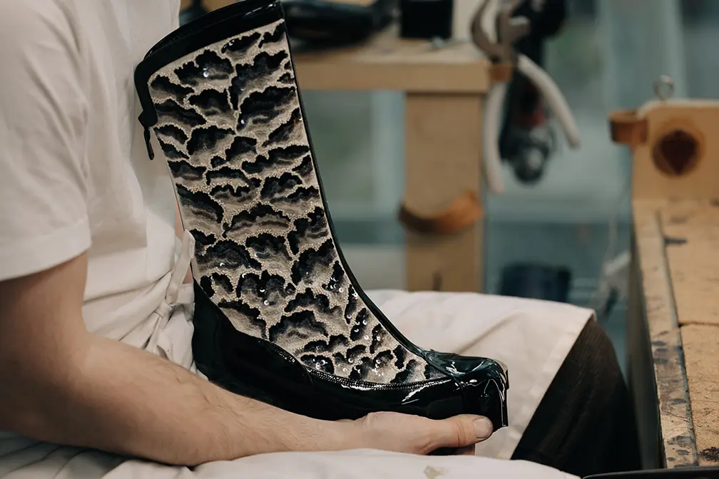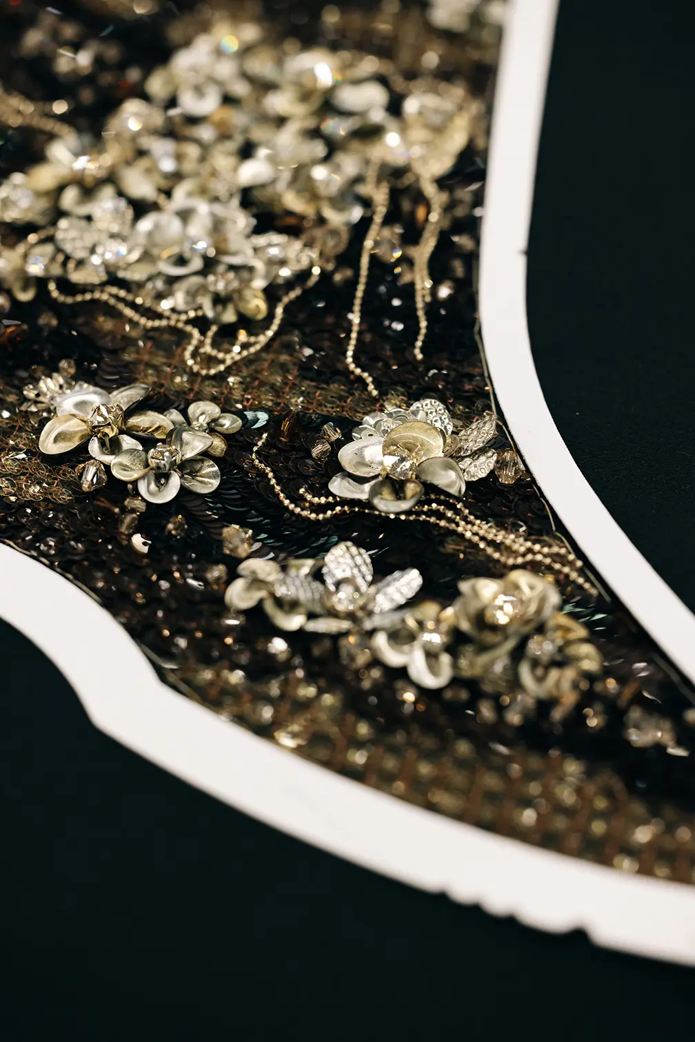 Partner incrollabile di CHANEL dal 1983, Lesage, che quest’anno celebra il suo centenario, è entrata a far parte della Fashion Métiers d’art nel 2002. Per la collezione Métiers d’art 2024/25, i ricami della Maison si ispirano ai motivi dei paraventi Coromandel tanto cari a Gabrielle Chanel, rielaborati in uno spirito onirico e astratto. Tra questi, stivali eccezionali ispirati a un paio appartenuto alla stessa couturière e disegnati in collaborazione con il calzolaio Massaro, anch’egli una delle Maison d’art residenti di le 19M.