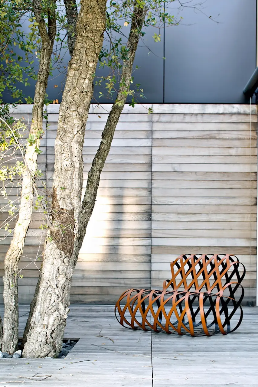Contraddistinta dal un design retro-futuristico, la poltrona lounge Aria de laCividina combina magistralmente eleganza e audacia: la struttura in acciaio, pur richiamando la solidità delle classiche poltrone imbottite, si distingue per una leggerezza visiva sorprendente.