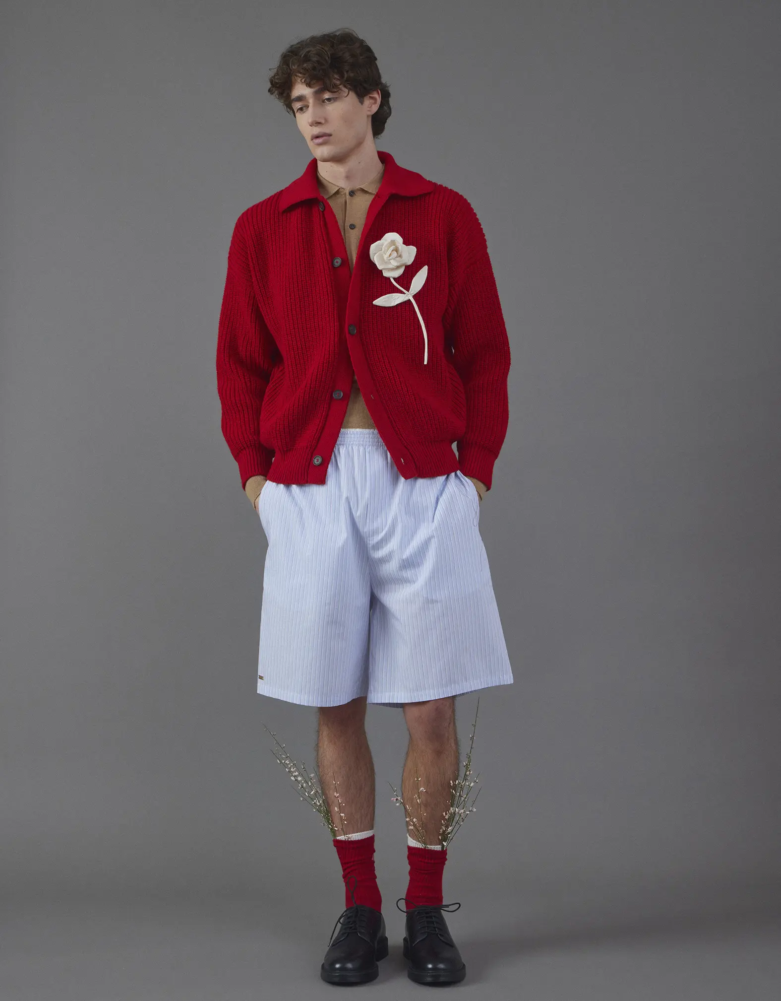 Elementi distintivi della collezione includono ricami in tessuto raffiguranti rose nei toni del bianco latte e del rosso, un gesto gentile che accompagna l’uomo CO|TE.